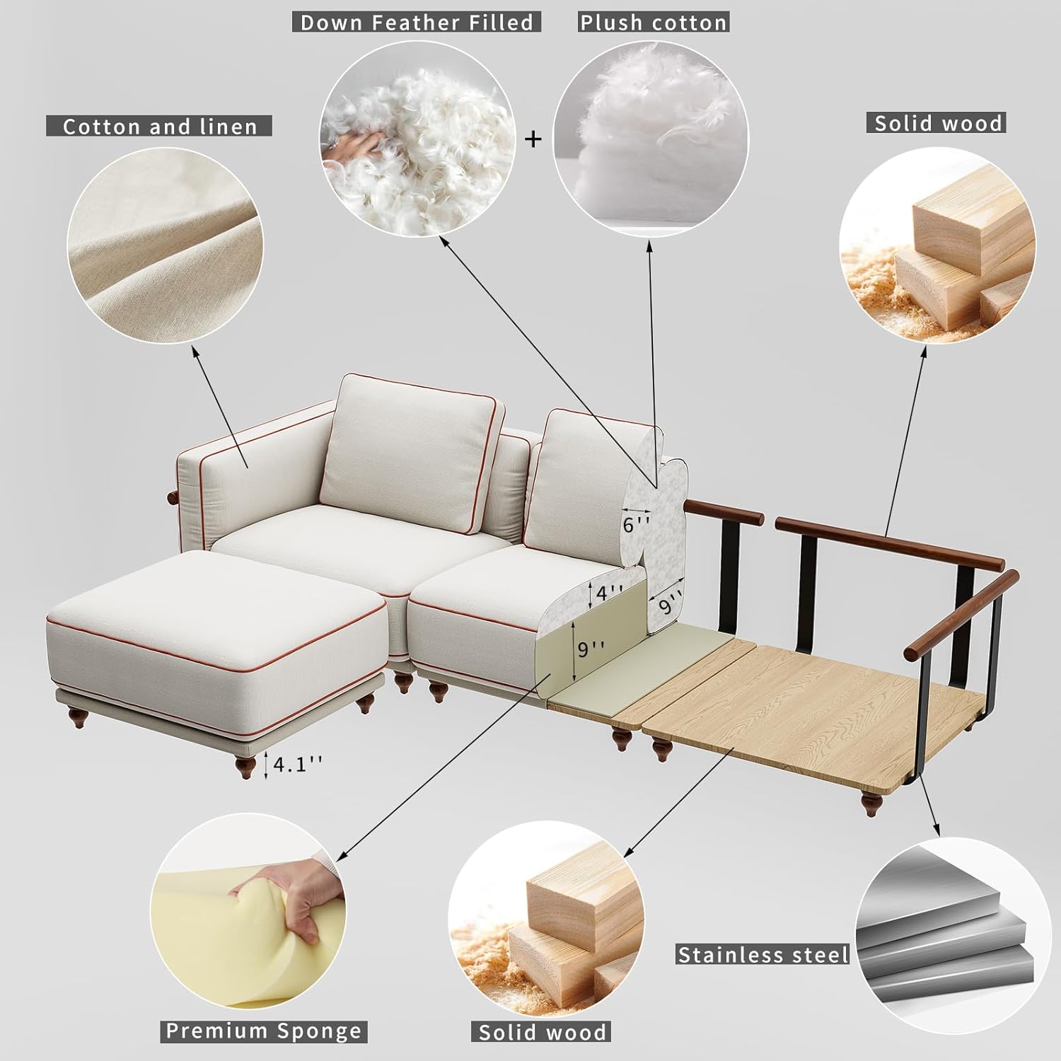 - Sofa cushions filled with 70% down, ultra-soft linen sofa