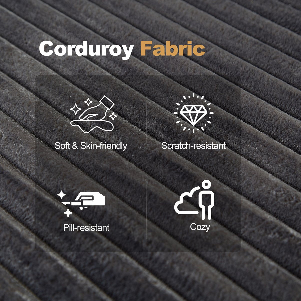 - Premium materials: Soft corduroy upholstery for a luxurious look and easy maintenance; durable full-foam interior for resilient support and long-lasting bounce-back