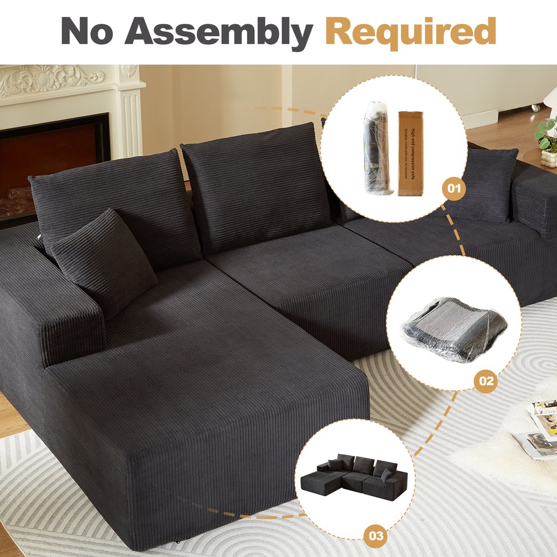 - Premium Material: Crafted from soft corduroy fabric, this sectional sofa not only feels luxurious but is also easy to maintain. The full foam construction provides excellent support, ensuring strong resilience and bounce-back, making it perfect for everyday use