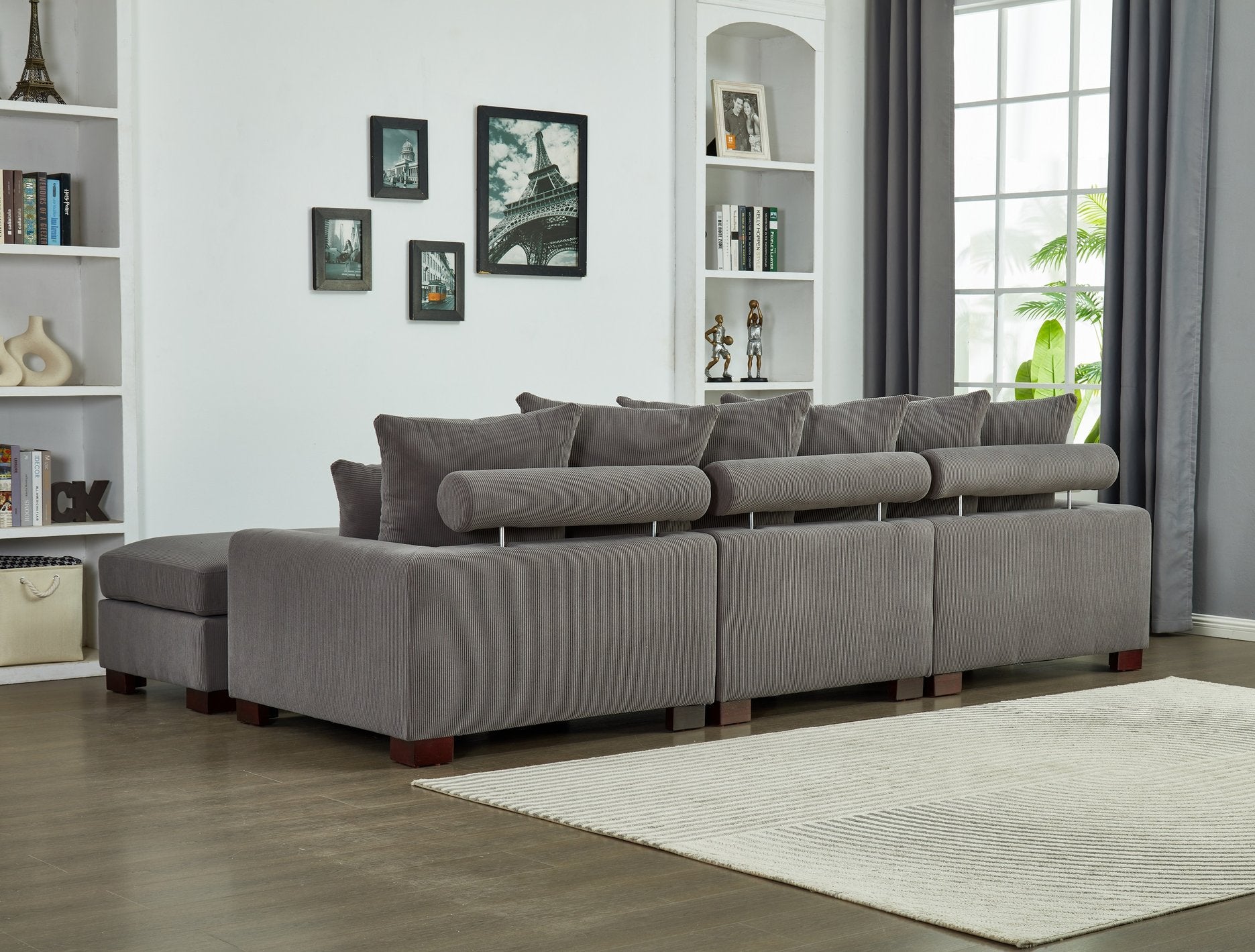 - ULTRA COMFORT: seat cushion overstuffed with high-density foam for a bubble feel and cloud-like comfort. Thick backrests with multiple pillows provide excellent support for your body. Covered in breathable Corduroy fabric, this sectional couch for living room makes you feel comfortable both physically and mentally.