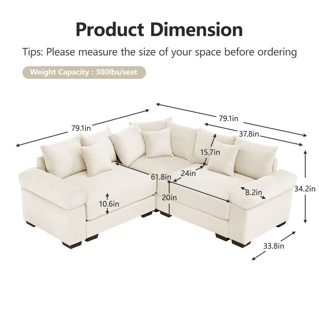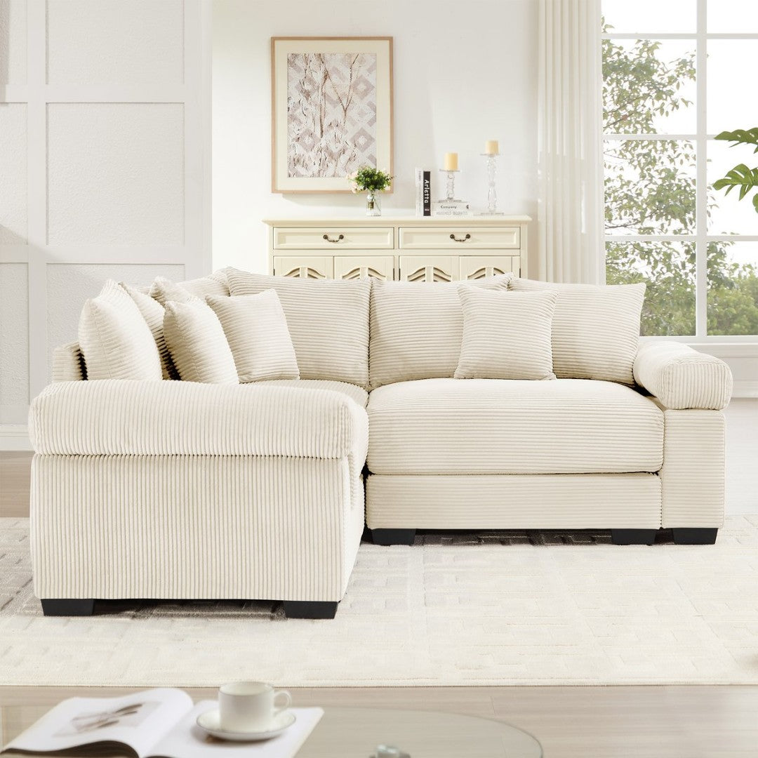 Sink into cloud-like comfort with this oversized modular sectional—designed for lounging, entertaining, and everyday living. Upholstered in plush premium corduroy and built on a sturdy solid-wood frame, the convertible pieces and included ottoman let you create the exact seating arrangement your space needs. Thoughtful ergonomic details—from deep seats to extra-wide armrests—deliver a cozy, supportive experience for long movie nights, naps, or hosting guests.