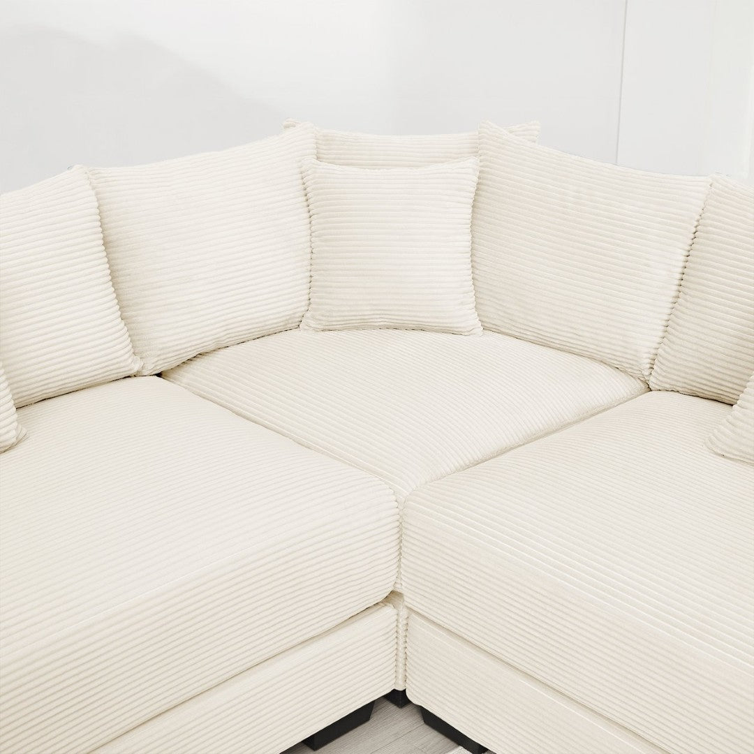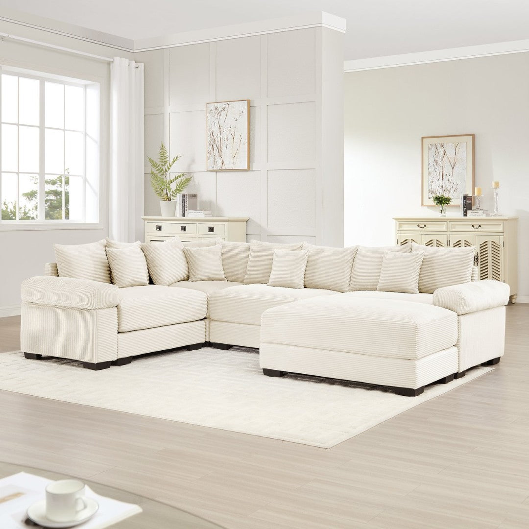 - Included Ottoman: Matching ottoman in the same cream corduroy can function as a footrest, extra seat, or extension of the sectional.