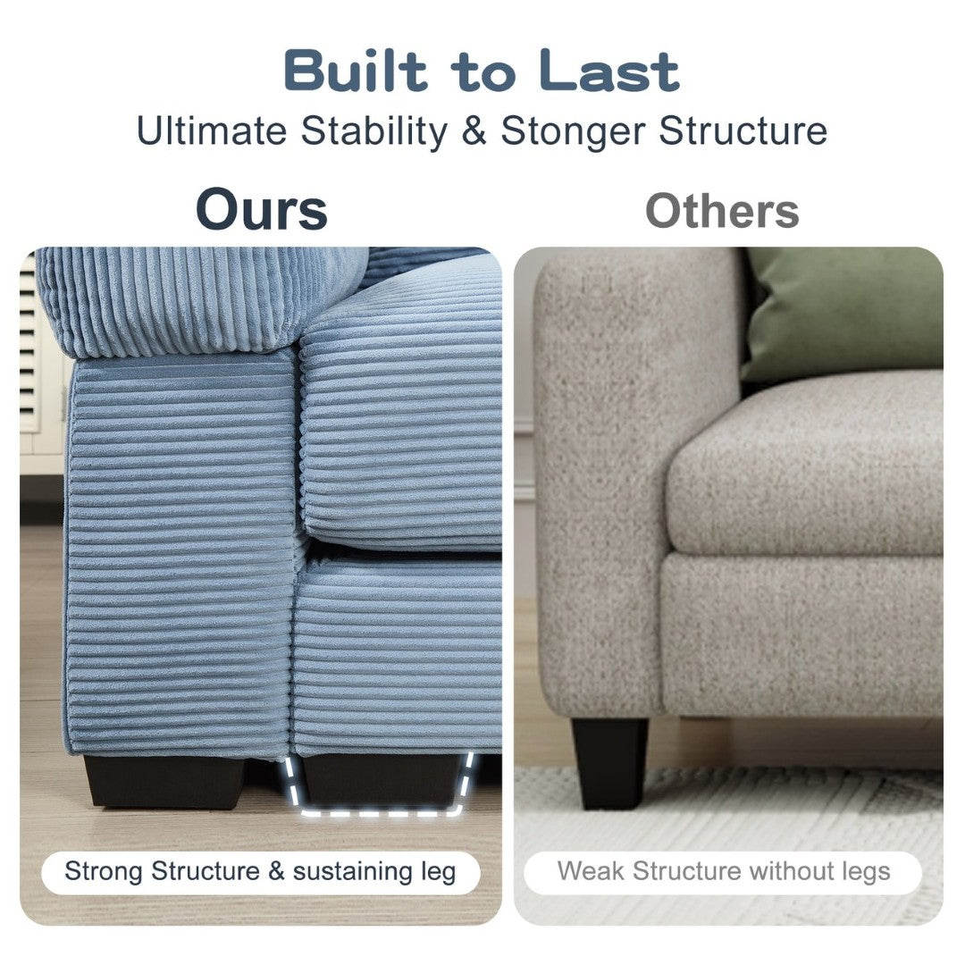 - Premium Material Craftsmanship:Upholstered in soft, high-density corduroy fabric, the sofa offers a smooth and delicate touch. Its unique velvety texture creates a luxurious seating feel suitable for year-round use. The durable and wear-resistant fabric, combined with high-quality sponge seat cushions and a solid wood frame, ensures long-lasting comfort and reliability through stable support.