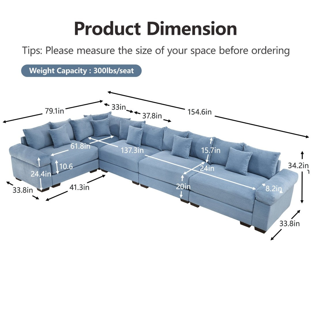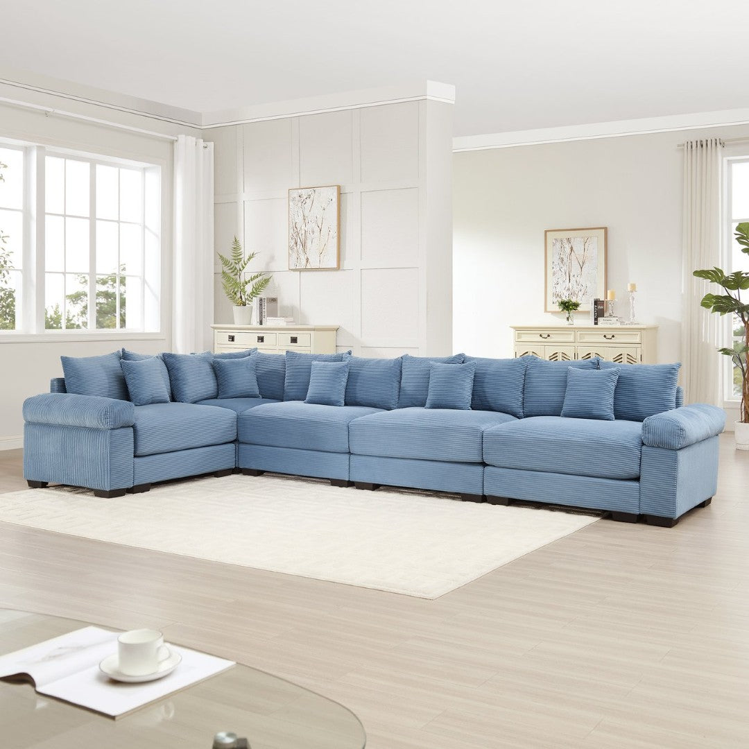 Sink into cloud-like comfort with this oversized modular sectional designed for lounging, reading, and casual entertaining. Upholstered in plush corduroy and built on a sturdy wooden frame, it blends relaxed ergonomics with durable construction and flexible configurations to suit a variety of living spaces.