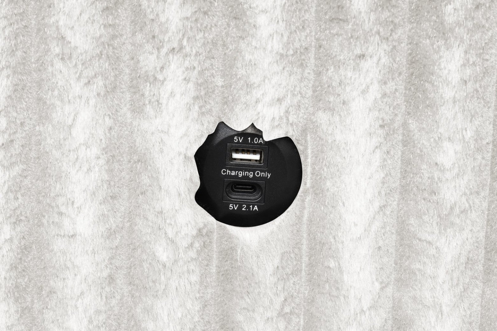 - Integrated USB ports allow you to keep your devices charged while you relax