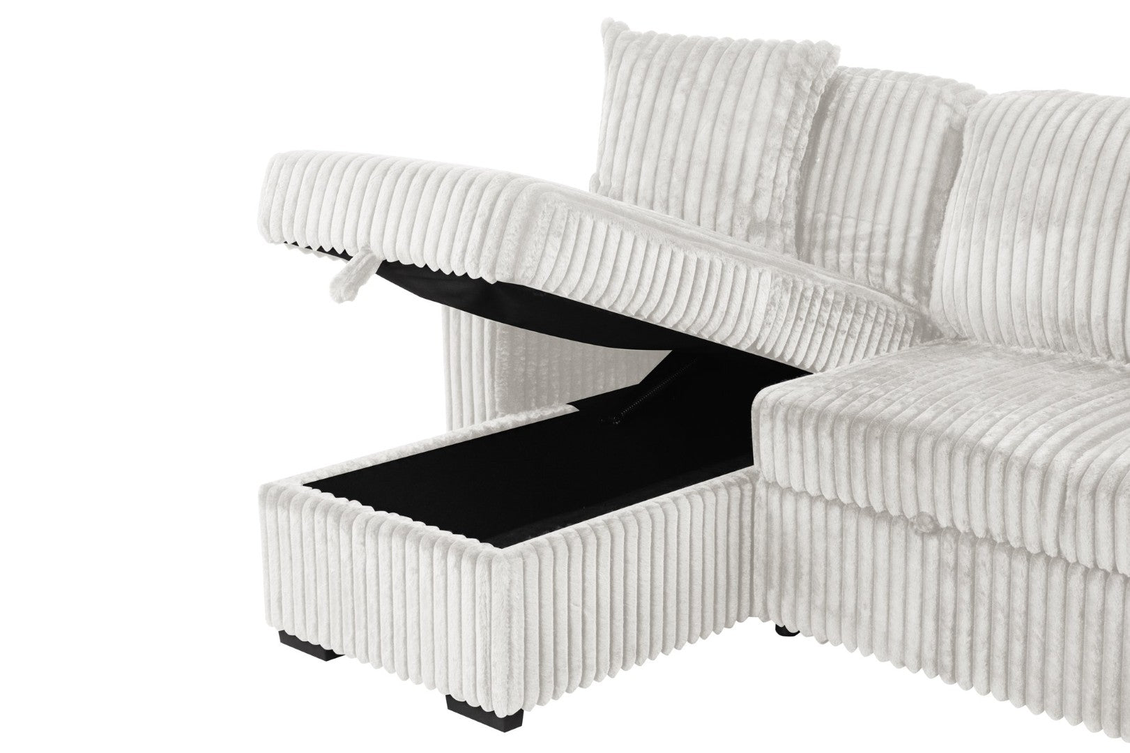 Sink into luxurious comfort with this versatile plush sectional, crafted to elevate both style and functionality in your living room. Upholstered in soft velvet-like corduroy, it combines a refined look with everyday practicality—perfect for lounging, entertaining, or accommodating overnight guests.