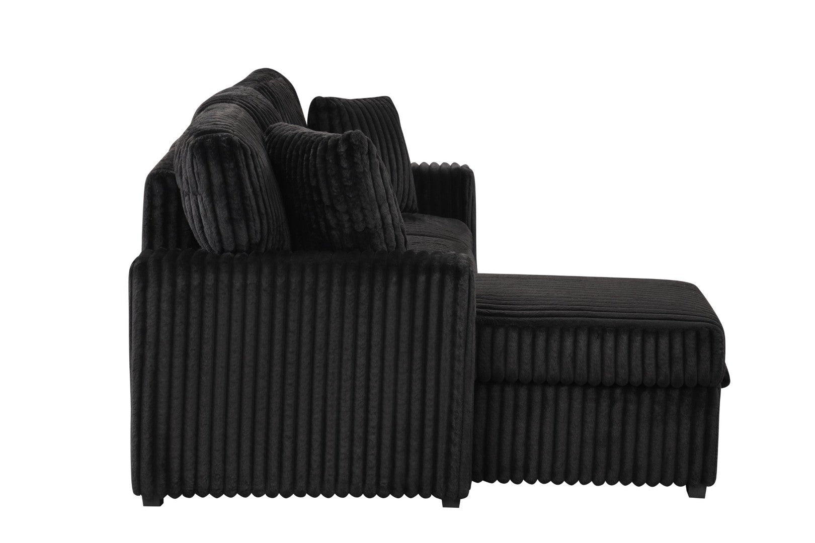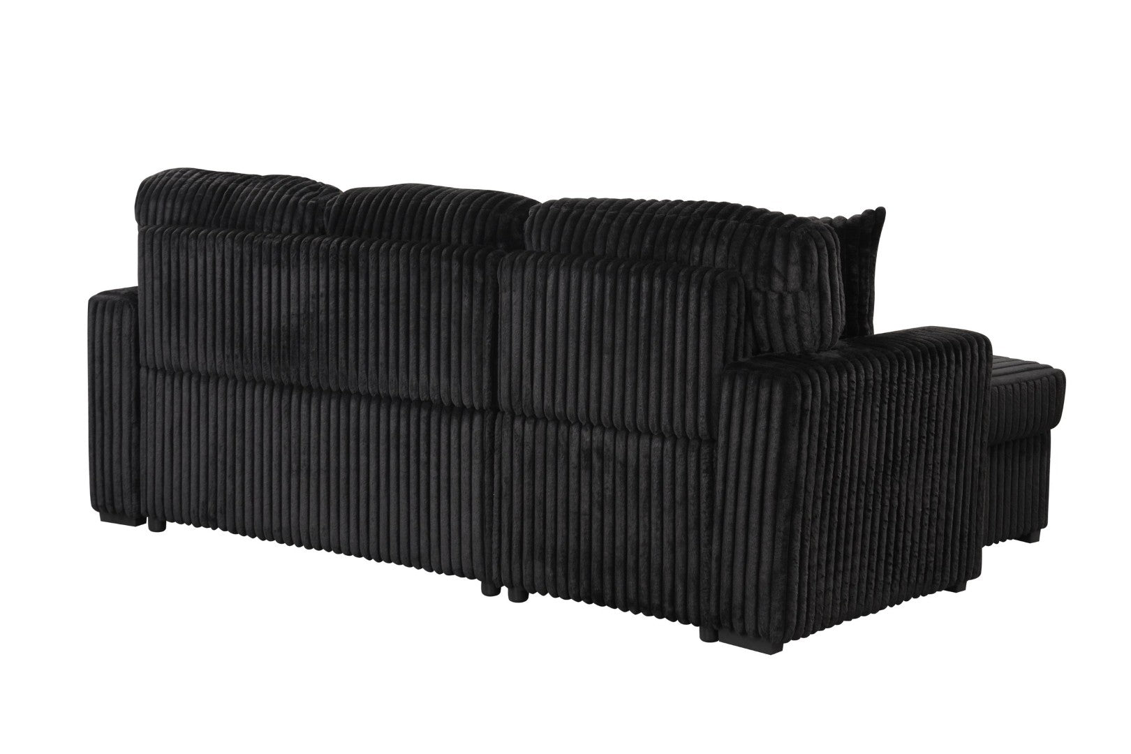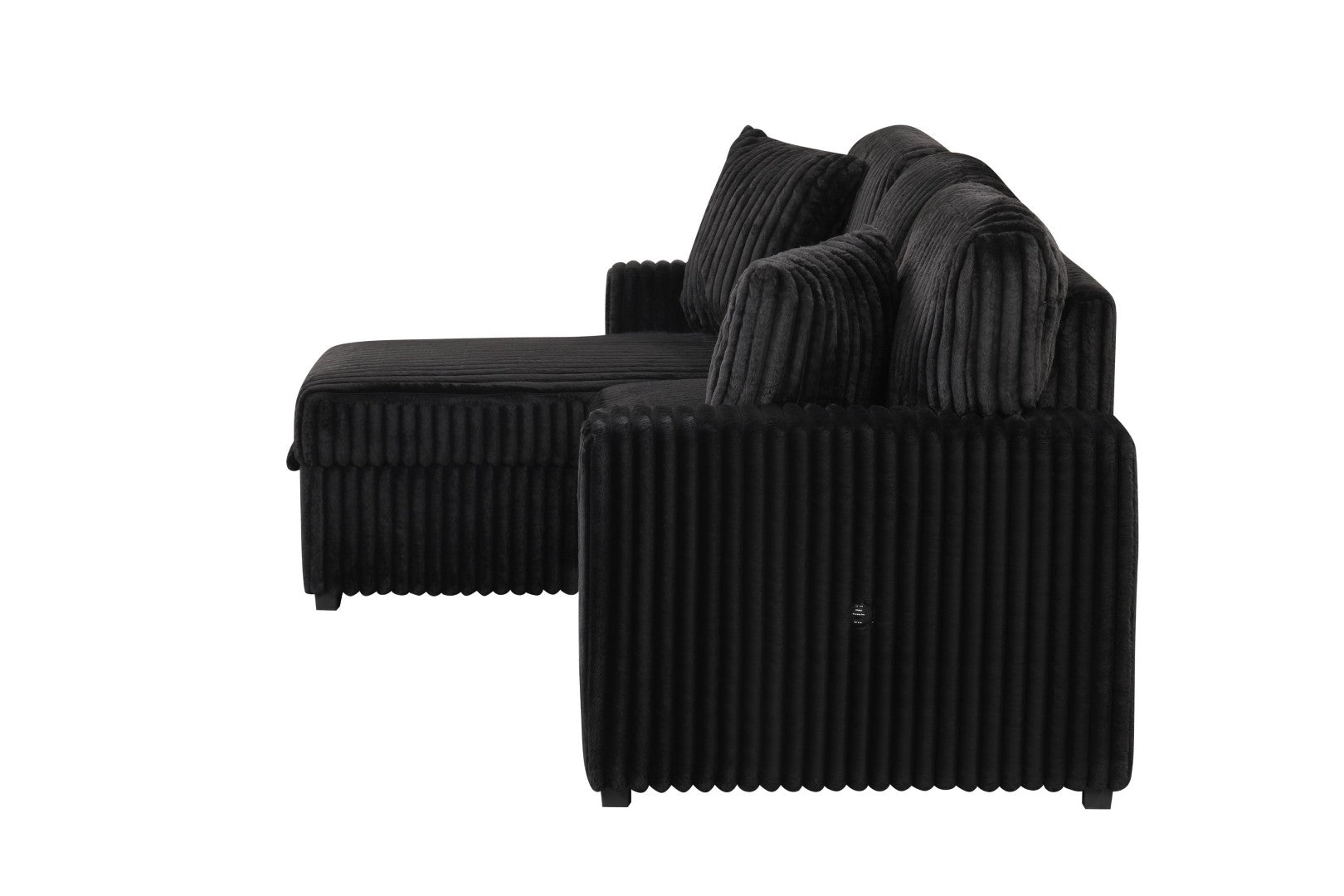 This plush, modern sectional combines comfort and functionality to elevate your living room. Upholstered in luxurious velvet-like fabric with a soft corduroy texture, it offers deep seating, versatile configuration, and convenient features—perfect for everyday lounging and overnight guests.