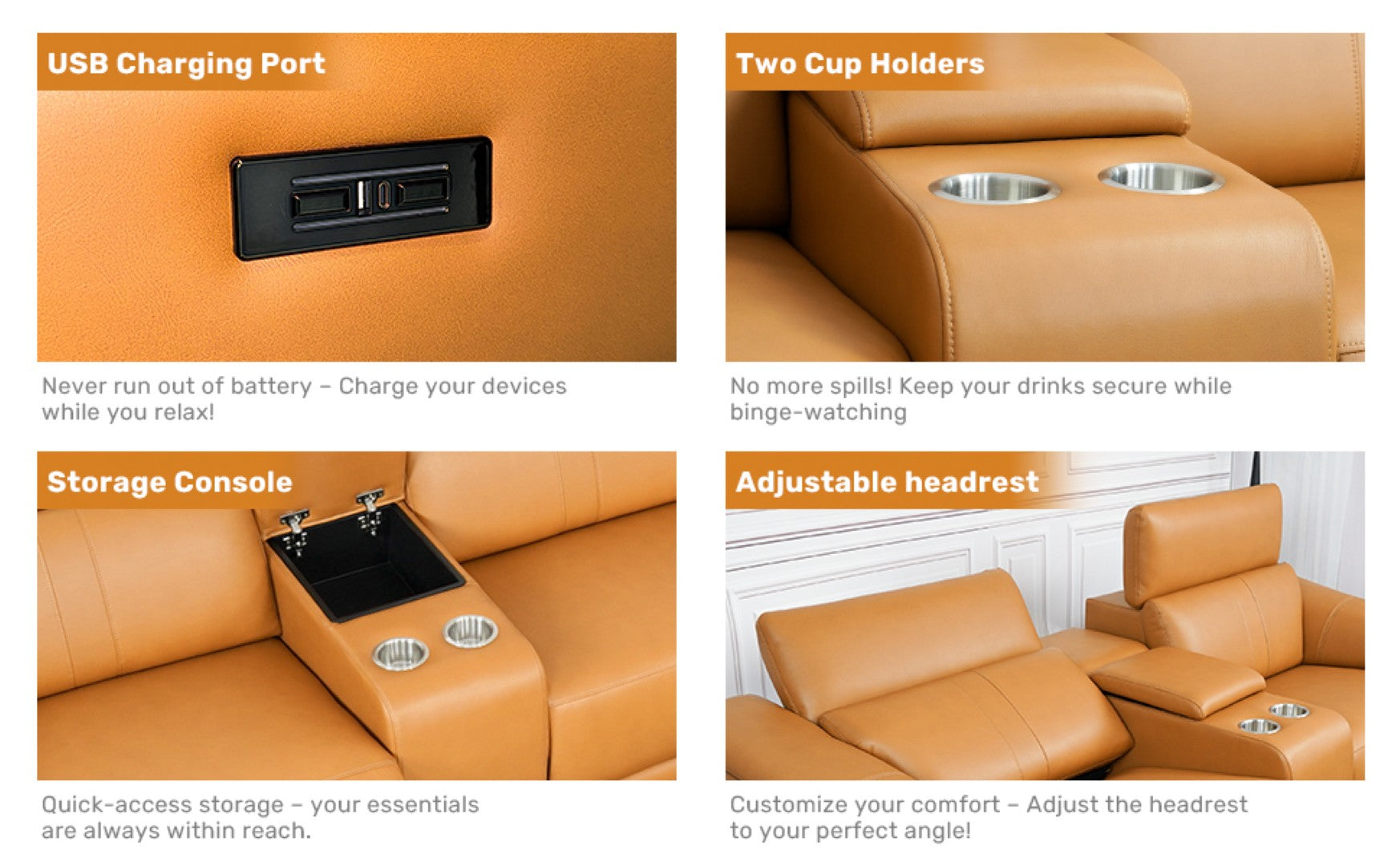 - 【Breathable Leather & High-Resilience Foam】Crafted with breathable leather and high-resilience eco-friendly foam, this power recliner sofa ensures long-lasting comfort and support. The premium materials provide a luxurious feel while maintaining durability for everyday use.