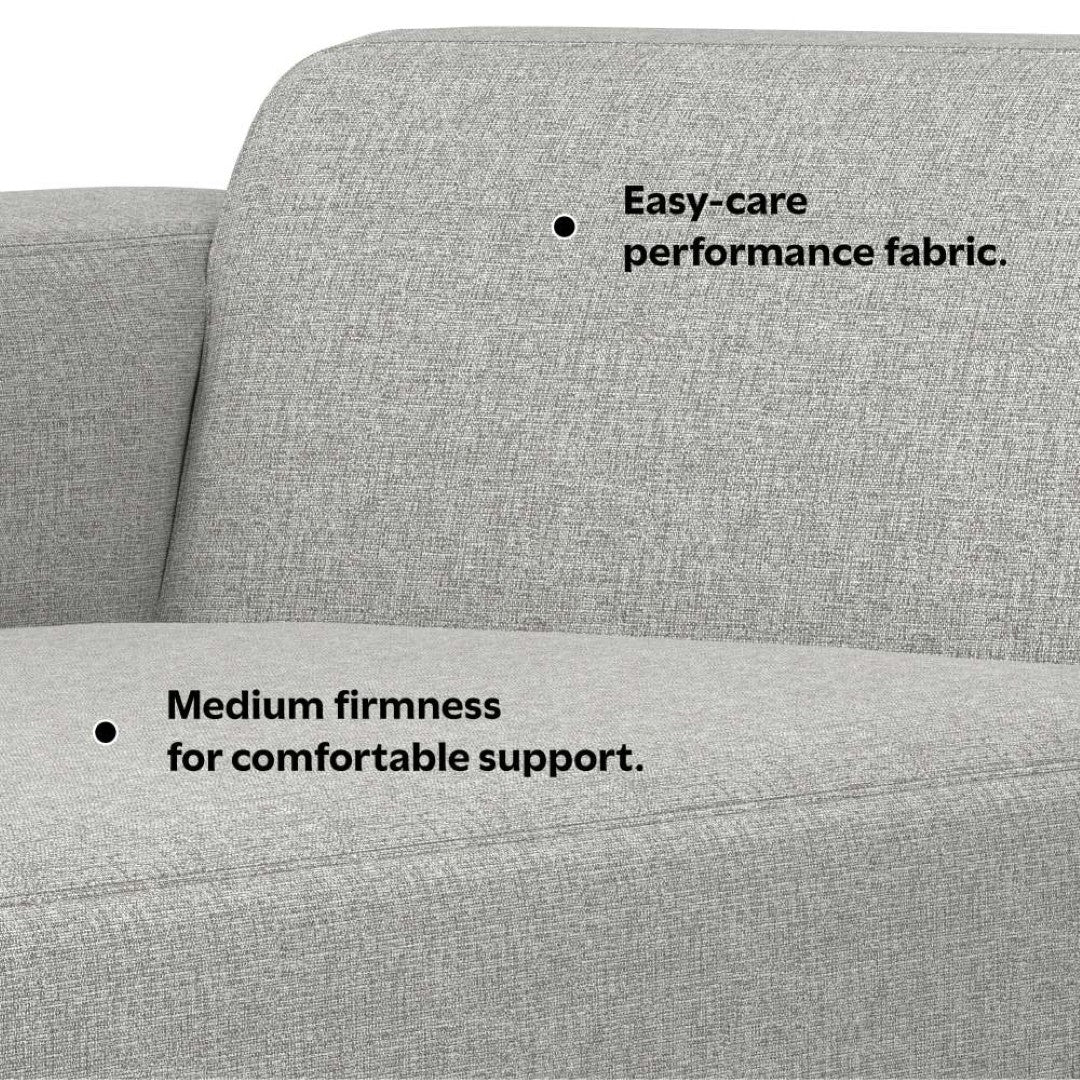 - Upholstered in Pale Grey Performance Fabric, a soft yet durable, easy-care fabric made with 100% recycled polyester and protected with water-repellent and fire-resistant coatings; this eco-friendly fabric meets the Global Recycled Standard and OEKO-TEX® STANDARD 100.