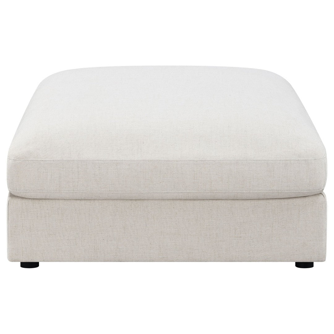 - Set configuration: 1 armless chair, 2 corner pieces, and 1 ottoman for flexible layout options.