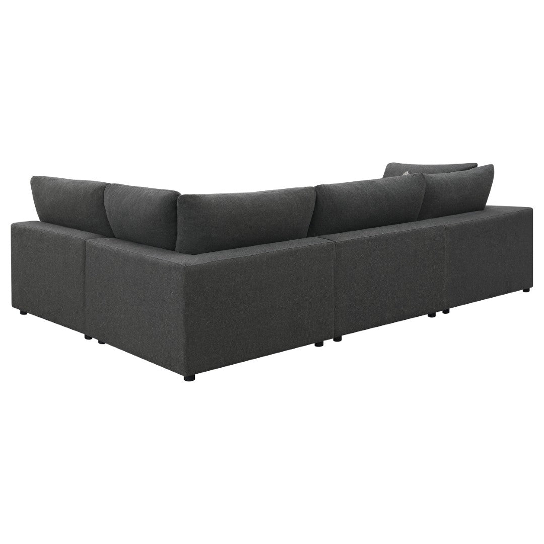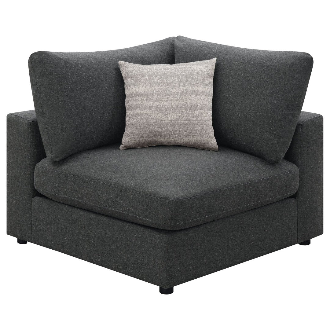 Create a warm, inviting focal point in your family room with this contemporary casual sectional. Thoughtfully designed for comfort and style, its linen-like upholstery, coordinated jacquard pillows, and feather-blend cushions offer a plush seating experience while the reversible cushions and modular pieces let you customize layout and extend longevity.
