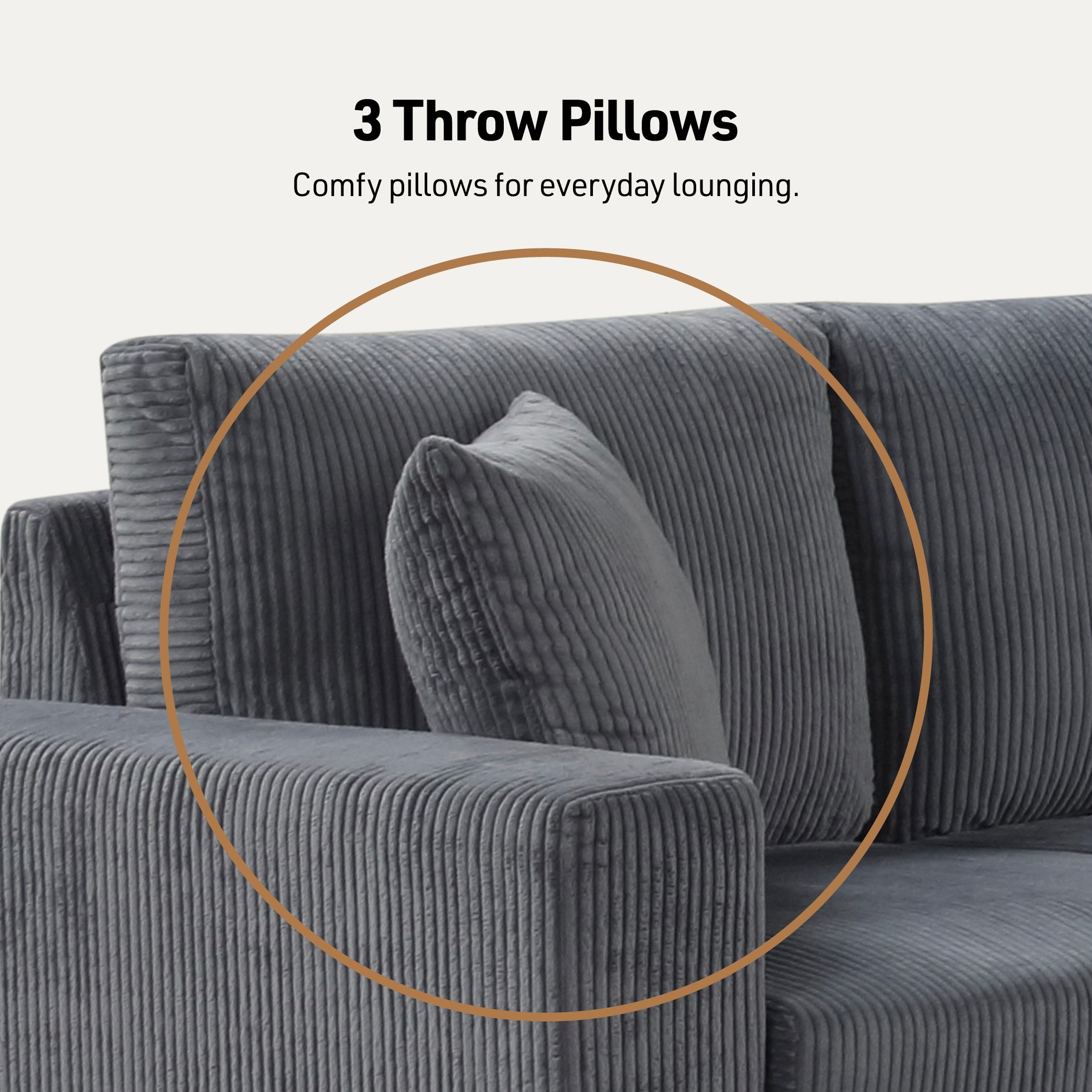 Sink into relaxed, versatile comfort with the Ruxley Corduroy Sleeper Sectional Sofa—an elegant, functional centerpiece designed for modern living spaces. Soft corduroy upholstery and plush cushions create a cozy seating experience, while the right-facing chaise with hidden storage and an easy-convert sleeper function offer practical solutions for day-to-day use and overnight guests. Thoughtful details and included throw pillows complete the look for a casually refined aesthetic.