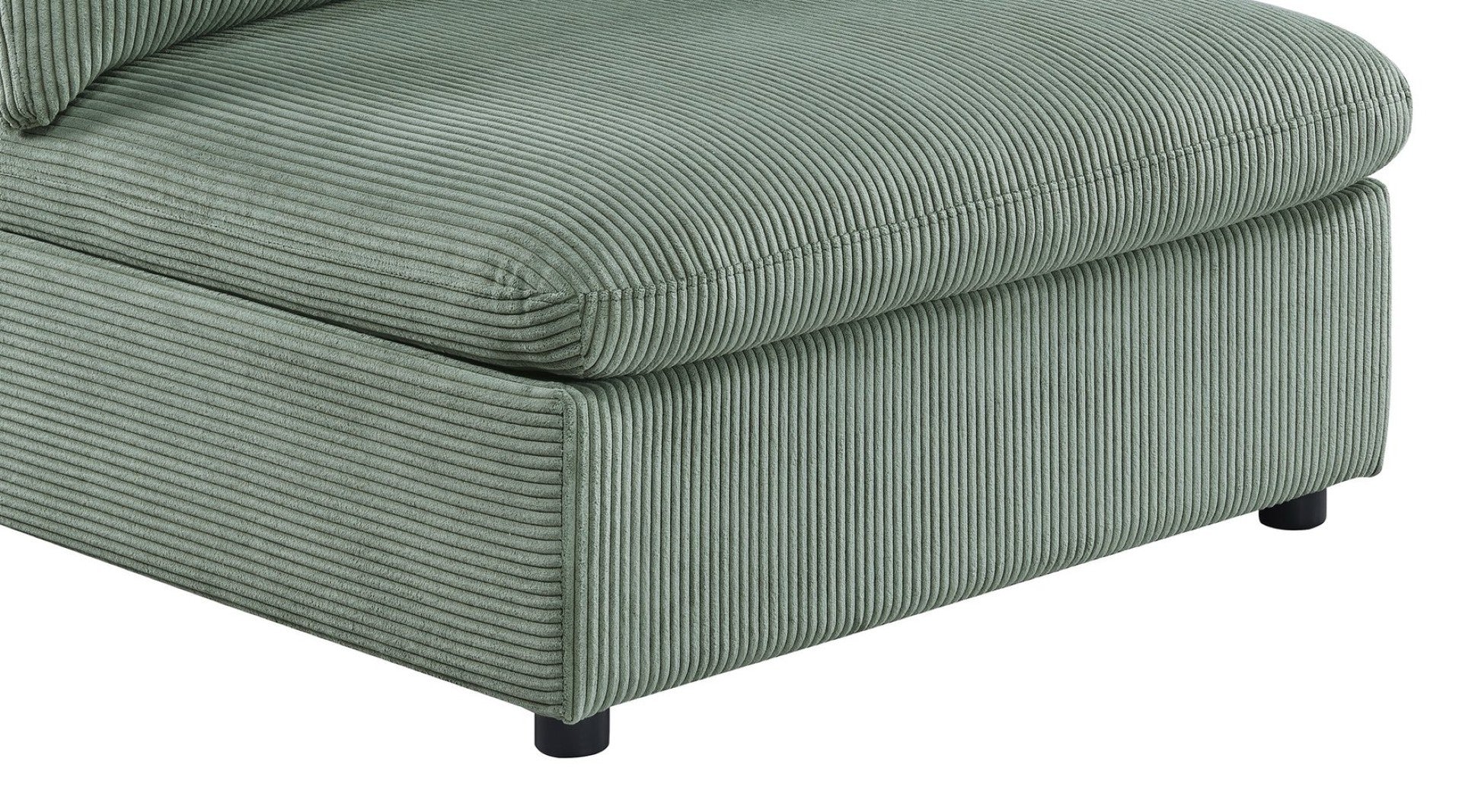 - Material & finish: Plush corduroy upholstery in a sage color for a soft hand and inviting texture; sturdy low-profile legs for a contemporary silhouette.