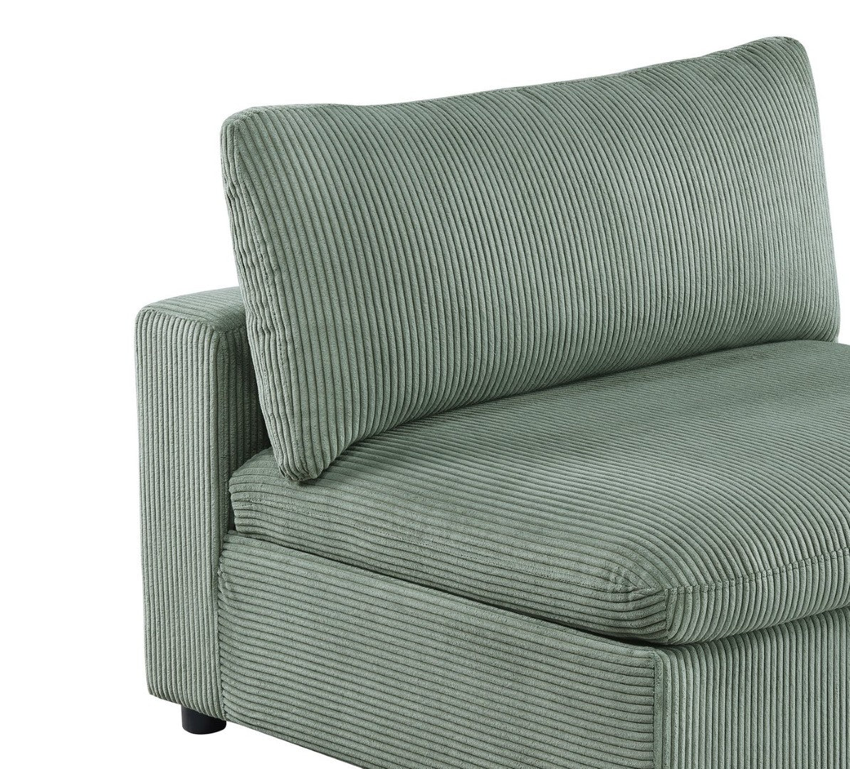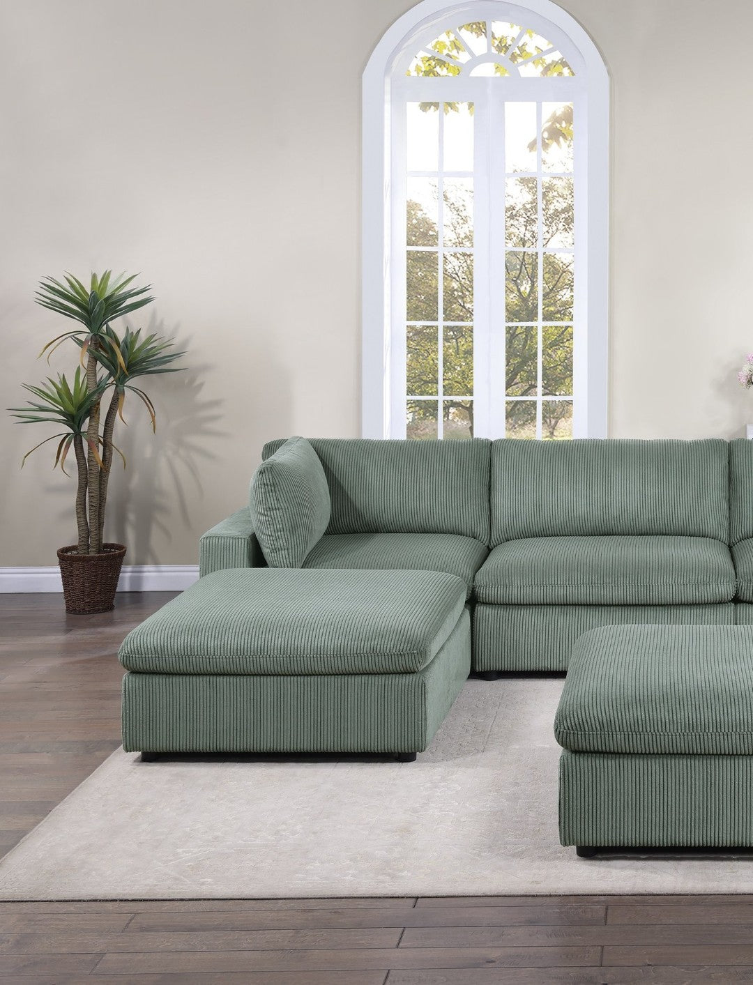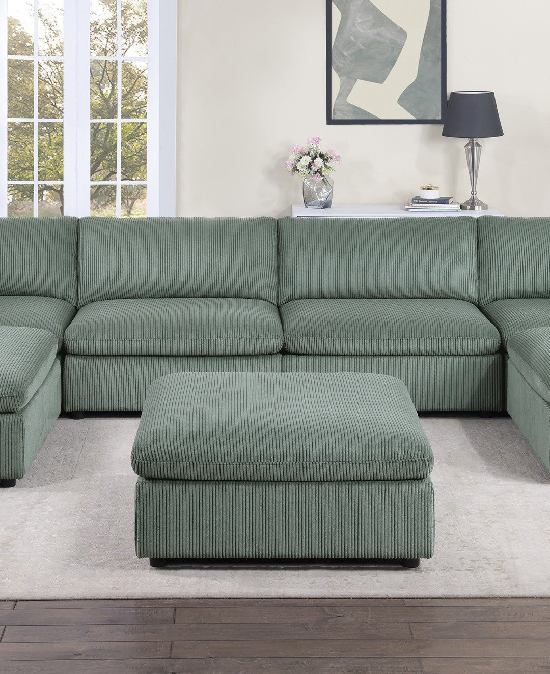 Create a cozy, modern centerpiece for your living room with this versatile 7-piece modular sectional. Wrapped in soft sage corduroy and supported on low, discreet legs, each piece can be arranged to fit your space—form a full sofa, an L-shape, separate seating clusters, or ottoman groupings. The warm neutral color and plush upholstery invite relaxation while the compact footprint makes it suitable for apartments and family rooms alike.