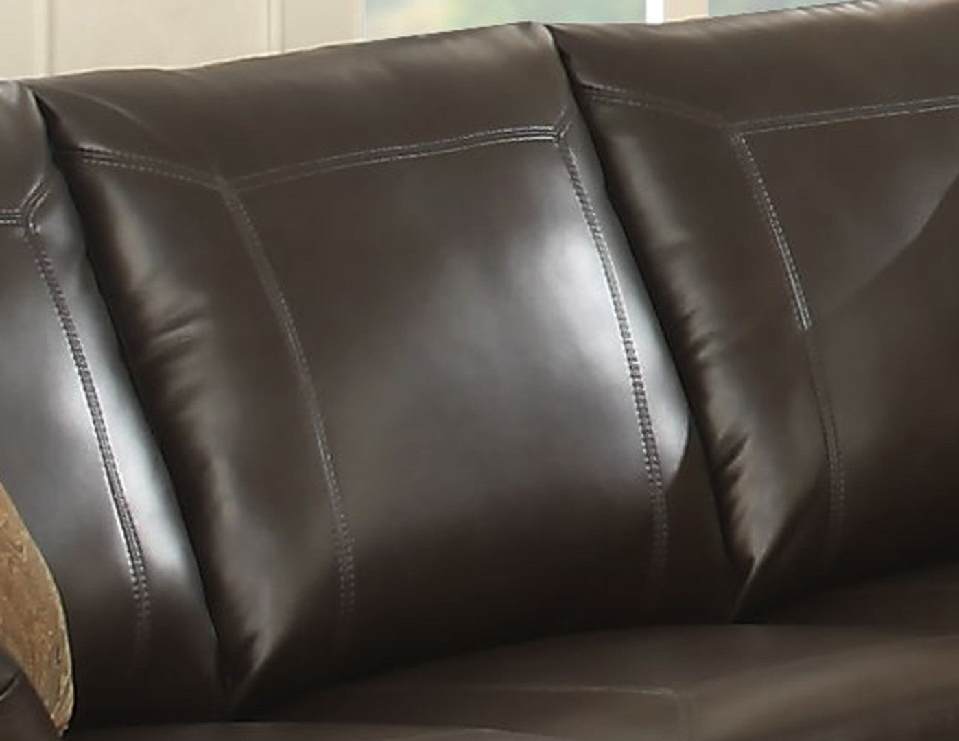 Bring comfort and timeless style to your living room with this elegant sectional designed for family gatherings and everyday lounging. Crafted for durability and comfort, the sofa blends classic leather texture with thoughtful design details—curved arms, antique brass nail head trim, and a sturdy wooden frame—so it looks as good as it feels while withstanding daily use.