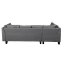 Add contemporary comfort and versatile storage to your living room with this modern 3-piece sectional sofa set. Upholstered in soft gray linen fabric and generously padded with thick foam, the set combines clean lines and cozy seating to accommodate family movie nights, guests, or relaxed lounging. The right-hand chaise and included storage ottoman maximize both seating and functionality, while coordinating cushions and throw pillows complete the look.