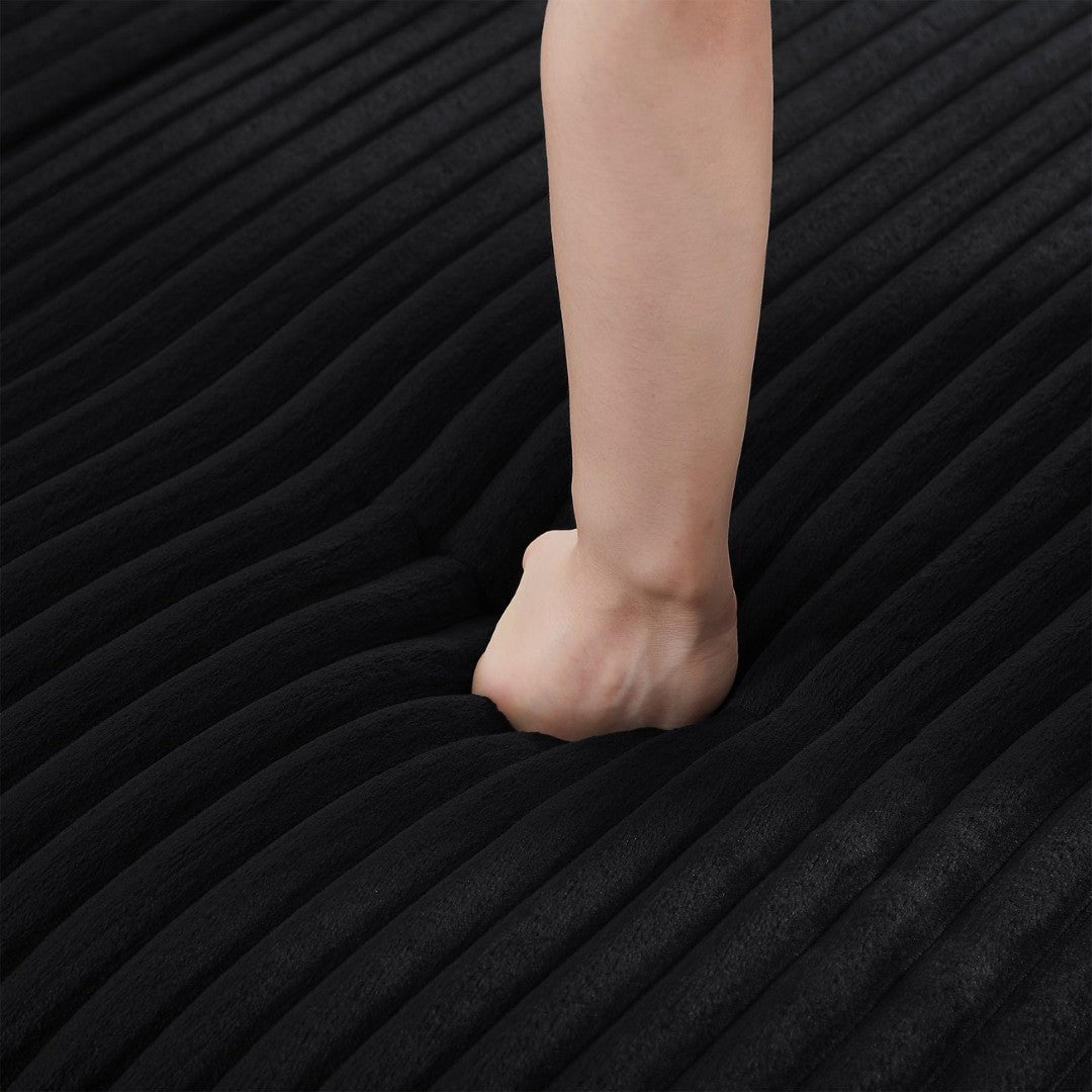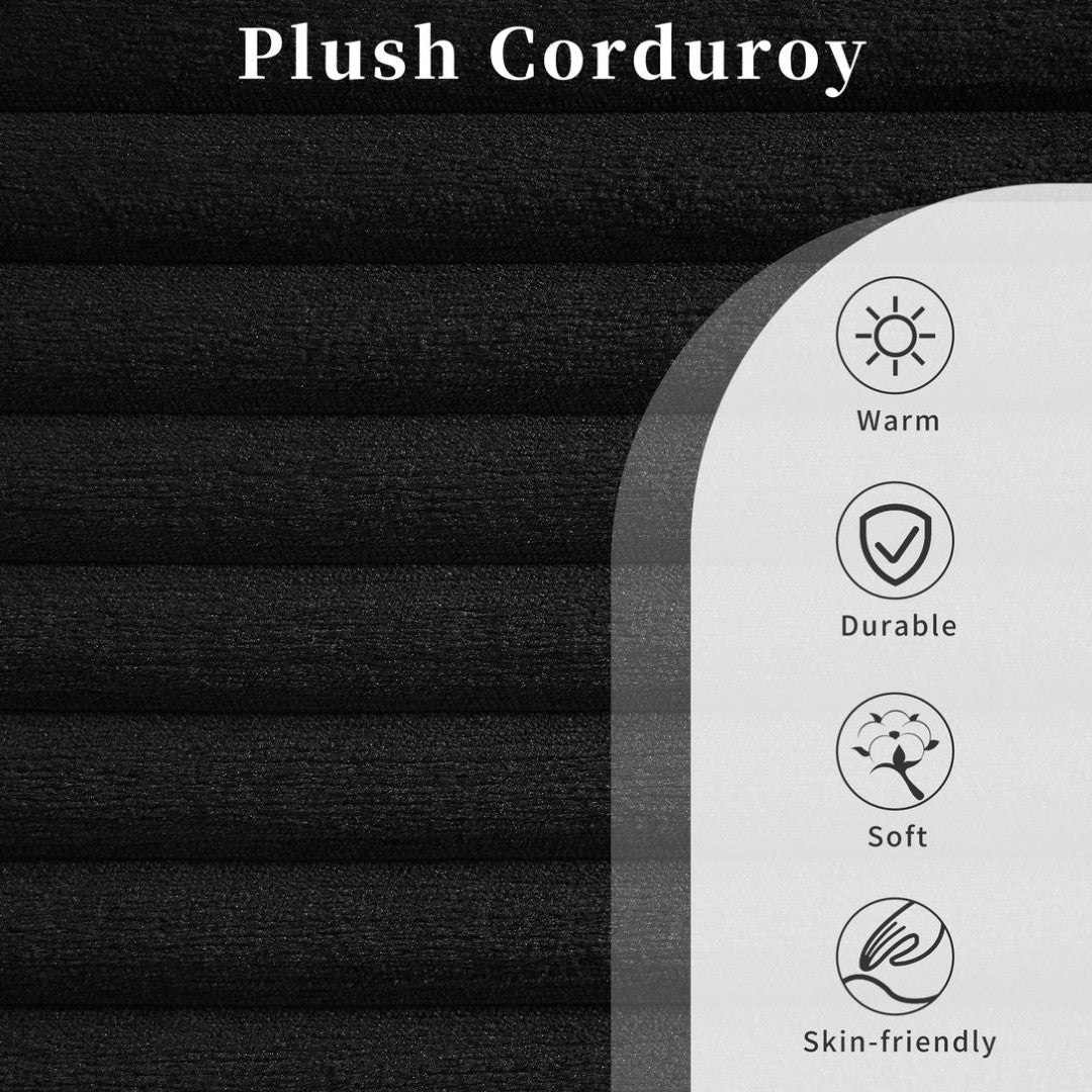 - Finish & color: Black ribbed corduroy for a modern, textural look that complements many decors.