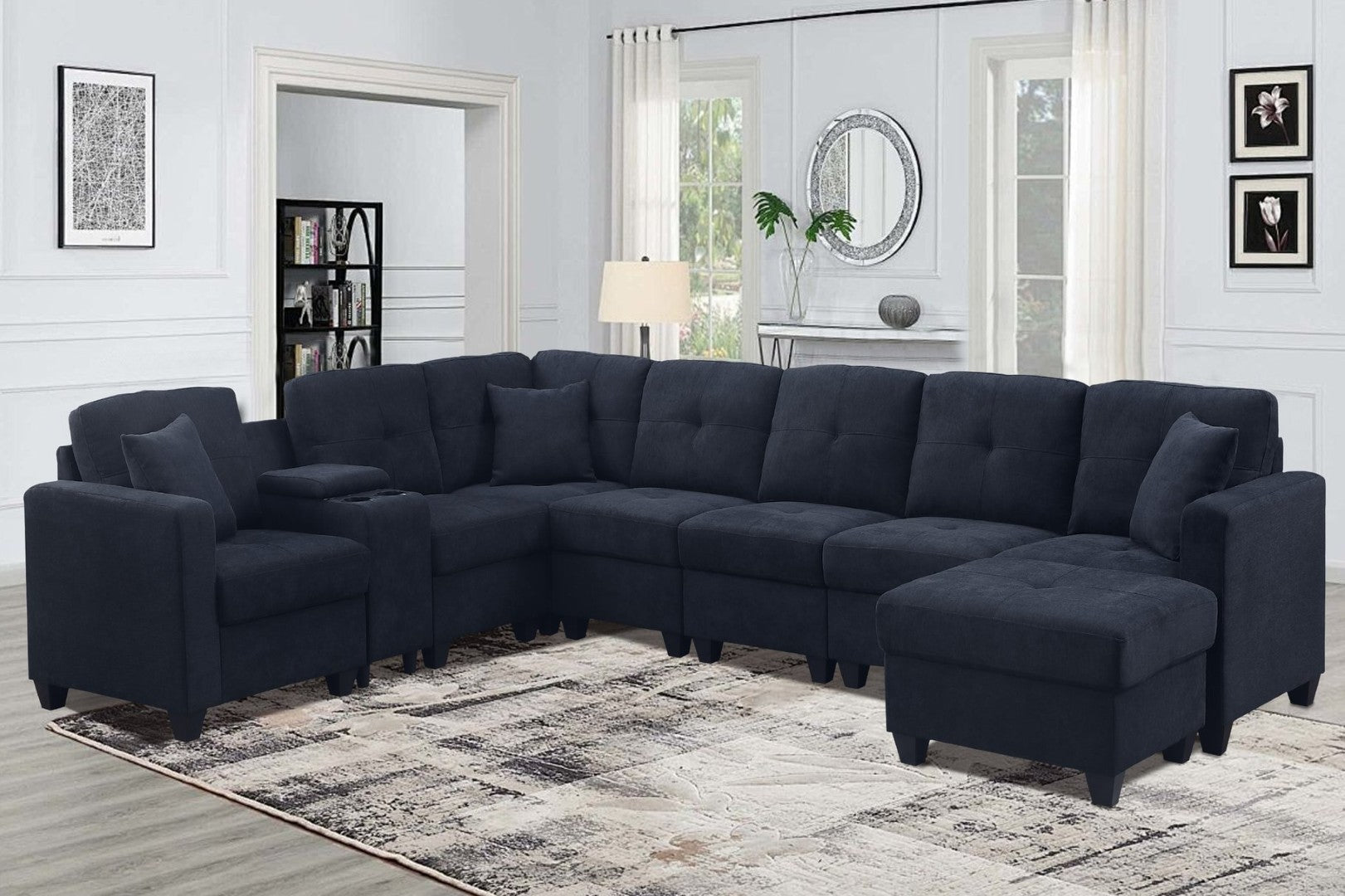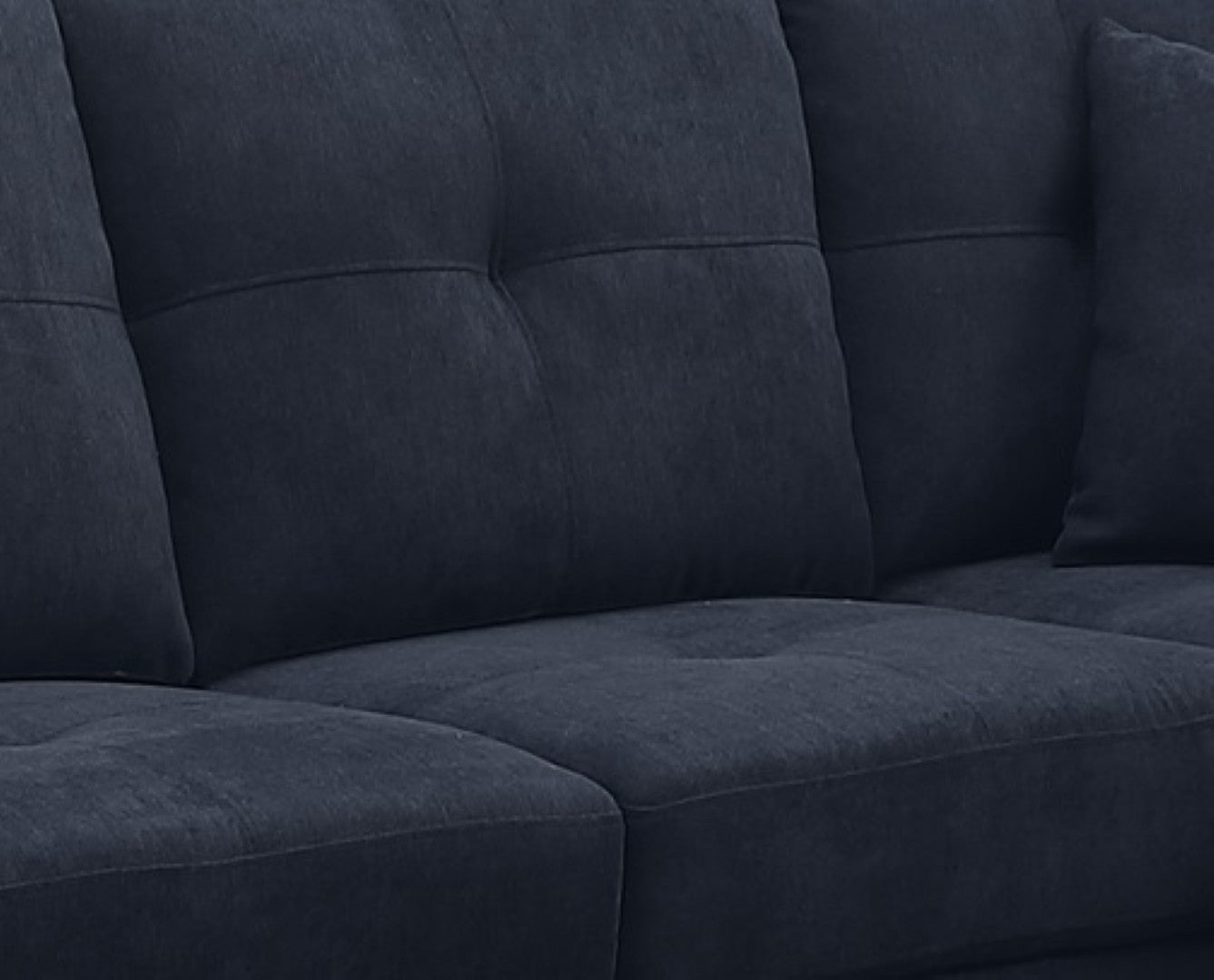 Sink into luxurious comfort with this dark blue sectional designed for both relaxation and style. Upholstered in soft velvet-like microfiber, it combines durable construction with plush seating and convenient features to elevate your living room, home theater, or lounge area.