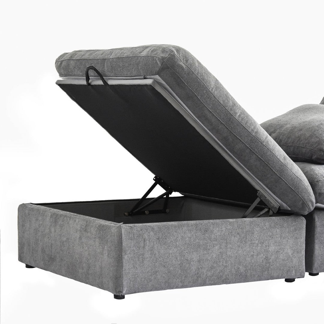 Sink into cloud-like comfort with the Sky Cloud sectional — a stylish, linen-upholstered L-shaped sofa designed for relaxed lounging and everyday living. Thoughtfully constructed with layered cushions, removable washable covers, and a convenient storage ottoman, this four-seater combines luxury materials with practical features for a family-ready centerpiece that’s easy to maintain.