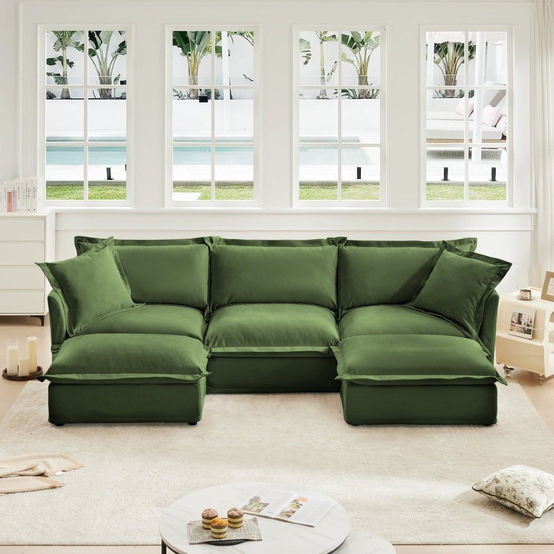 Sink into the plush comfort of this modular chenille sectional—designed for modern living rooms and apartments where style meets versatility. With deep seats, high back pillows, and removable slipcovers, this U-shape sofa delivers a cozy, cloud-like experience while offering multiple configuration options to fit your space and lifestyle.