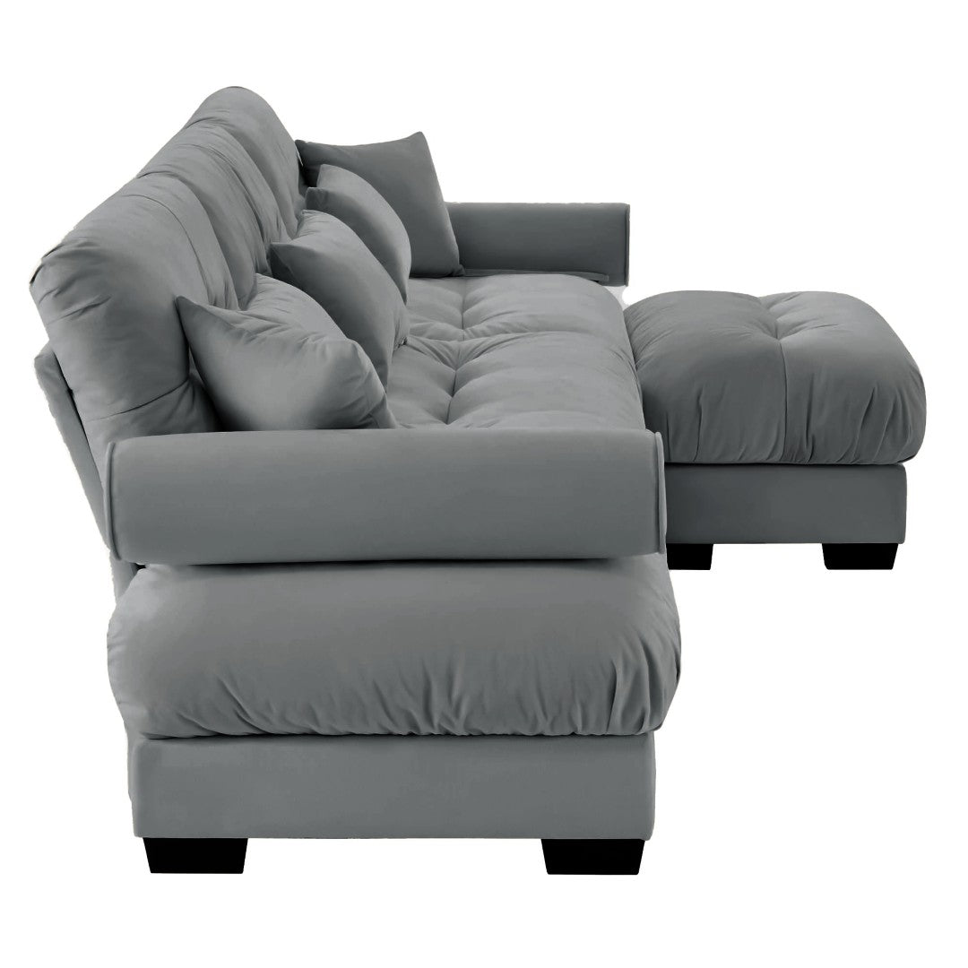 Sink into luxurious relaxation with this oversized modular velvet sectional, designed for style, comfort, and flexibility. Its plush vintage velvet, cloud-like cushions, and bolstered armrests create an inviting centerpiece for living rooms where lounging, entertaining, and movie nights are priorities. Modular pieces and matching ottomans let you configure an L-shape, U-shape, or individual seating to match your space and lifestyle.