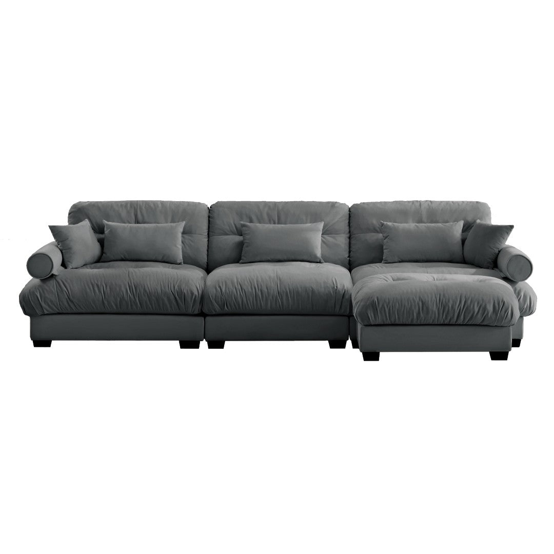 - Cushion construction: Deep, springless “cloud” seat cushions filled with high‑resilience sponge and doll cotton for exceptional softness, support, and bounce-back.