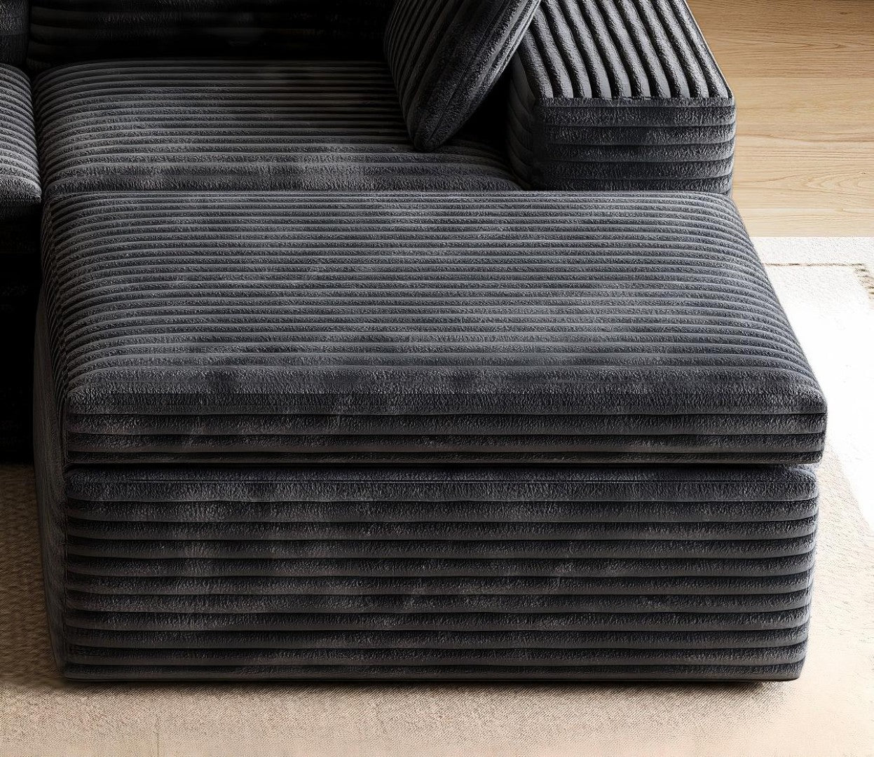 - Corduroy Fabric:Experience the lavish comfort of our enhanced corduroy fabric, offering unmatched softness and warmth. Its impressive durability and stain-fighting prowess keep your sofas looking fresh and lively. With a variety of color choices, our corduroy chaise sofa lets you showcase your unique style while adding irresistible charm to your space