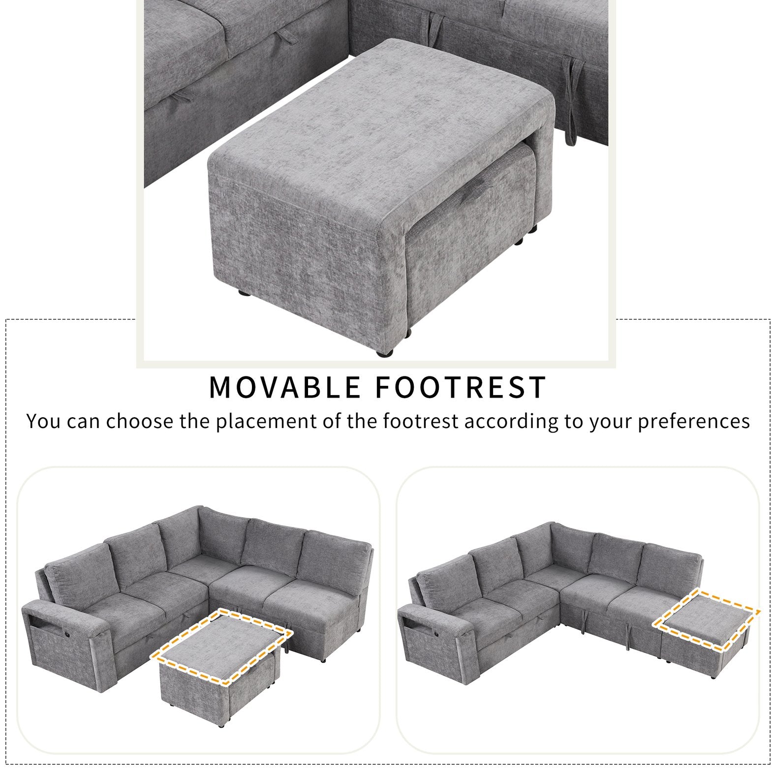 - L-shaped Multi-functional Sofa: Our sofa adopts an L-shaped design that is extremely elegant and dignified, greatly enhancing space utilization. The pull-out structure and the removable ottoman allow you to freely adjust the sofa to meet diverse needs.