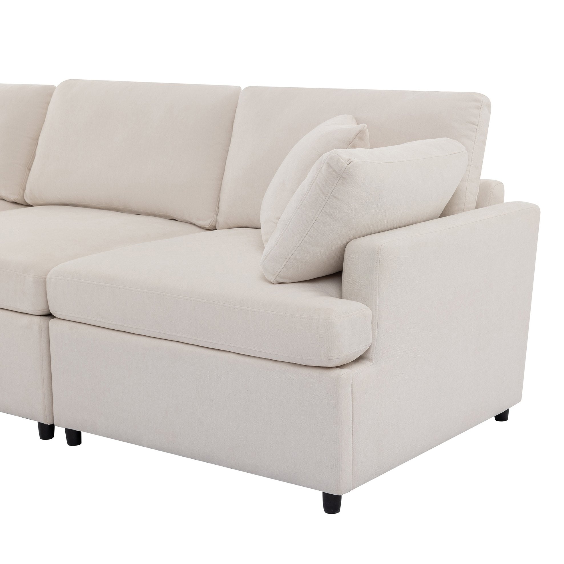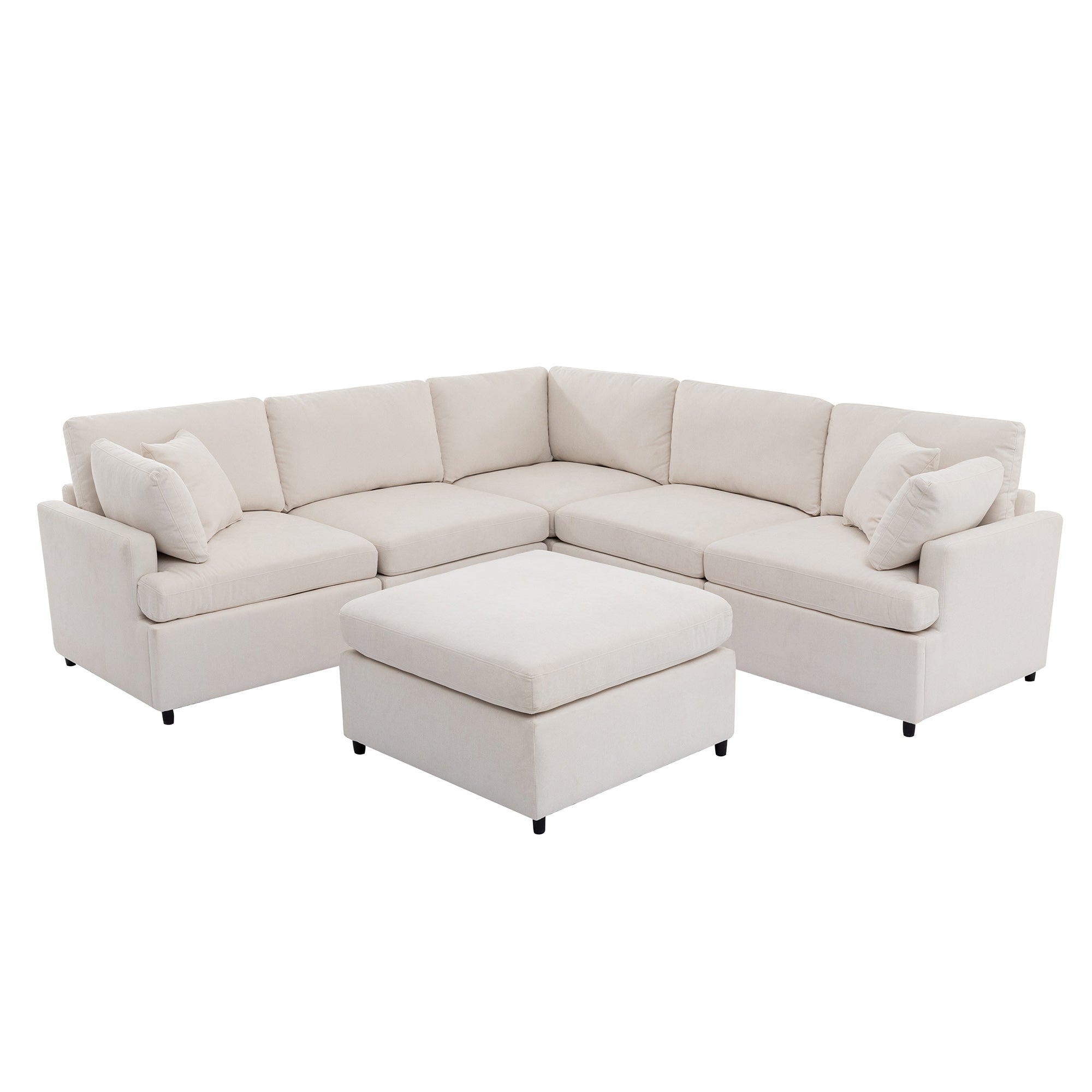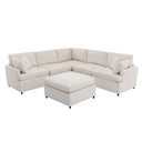 Enhance your living room with this spacious U-shaped upholstered sectional, designed for comfort, durability, and modern living. With generous seating for six and a removable ottoman for flexible arrangements, this sectional blends practical construction with soft, easy-care upholstery to create a welcoming centerpiece for apartments, family rooms, or open-plan spaces.