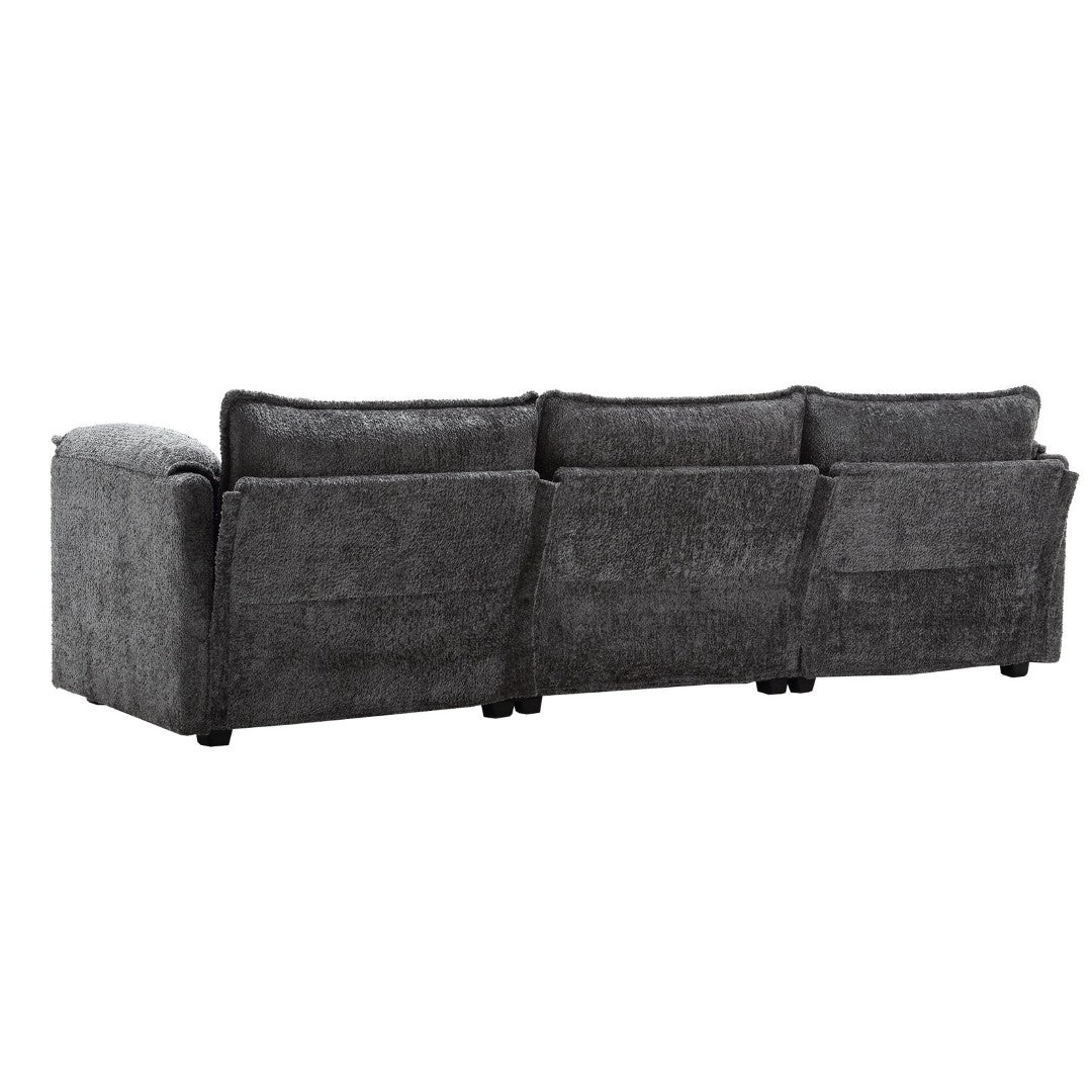 - Upholstery: Soft, durable chenille/bouclé fabric offering a modern textured look that resists everyday wear.