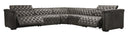 Experience refined comfort and contemporary style with this five-piece power sectional, designed to be the centerpiece of your living room. Richly detailed yet engineered for modern relaxation, it blends button-tufted tailoring, nailhead accents, and a low-profile silhouette with power recline and adjustable headrests for personalized support. Upholstered in finished top-grain leather with split-leather accents and finished on a coffee brown wood base, this sectional offers both durability and aesthetic sophistication.