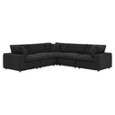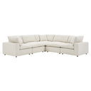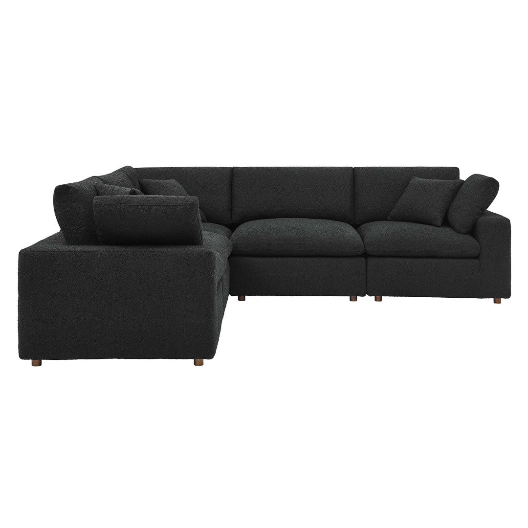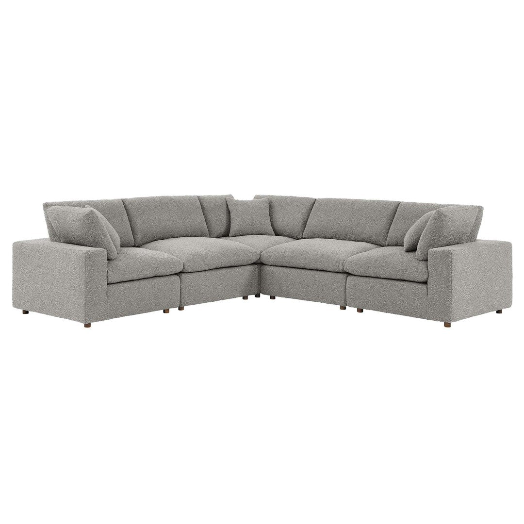 Sink into cloud-like comfort with the Commix sectional—an overstuffed, down-filled centerpiece designed for modern living. Wrapped in soft boucle fabric with a tactile nubby texture and supported by a solid wood frame, this five-piece sectional combines relaxed luxury with durable construction. Ideal for lounging, movie nights, or entertaining, Commix invites you to stretch out, curl up, and enjoy long-lasting comfort and refined style.