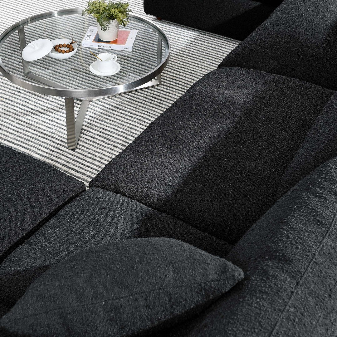 - Contemporary Modern Sectional Sofa Boucle Fabric Upholstery Density Foam Seat Down Feather and Cotton Cushions Solid Wood Construction Assembly Required Weight Capacity Each Piece: 331 lbs.