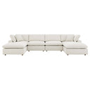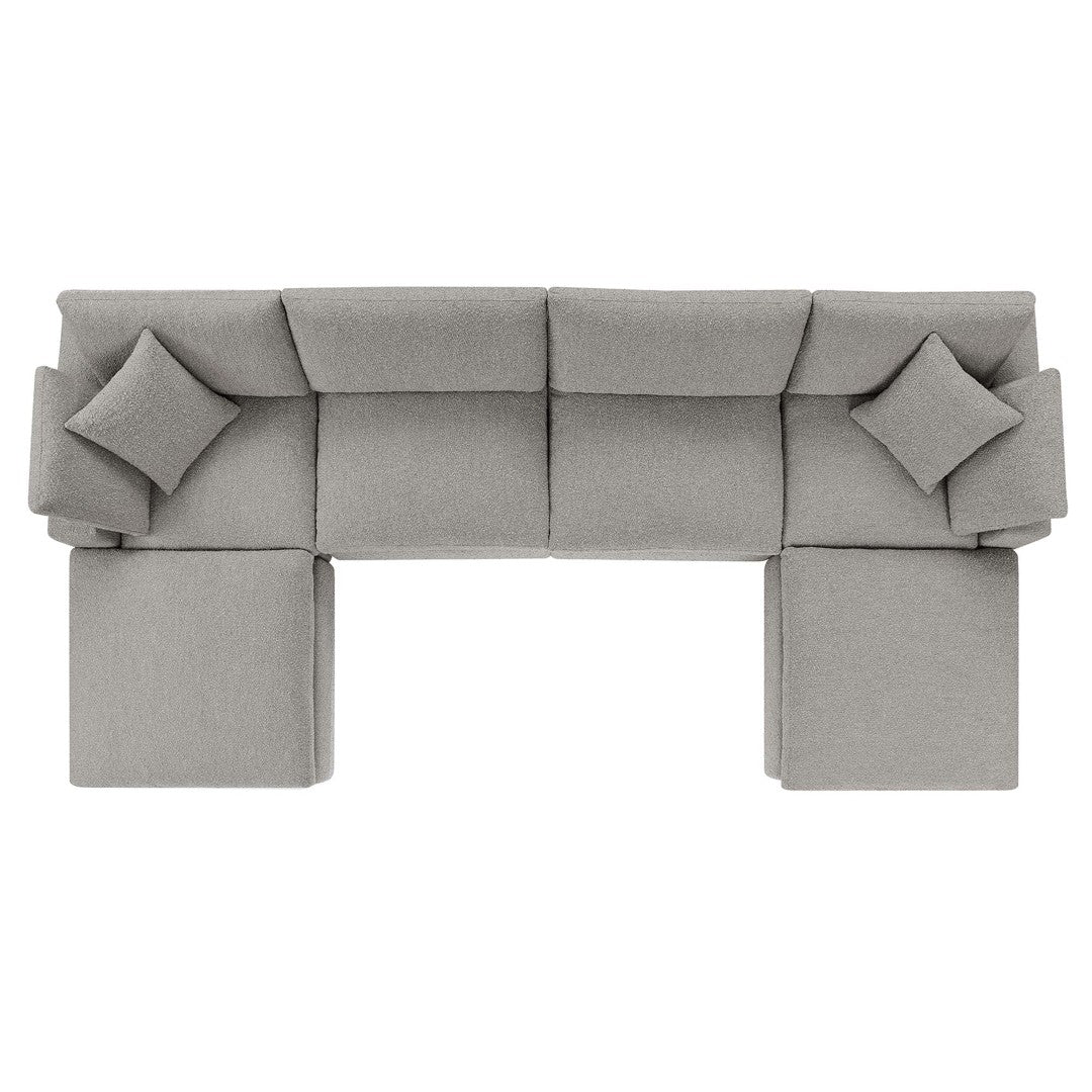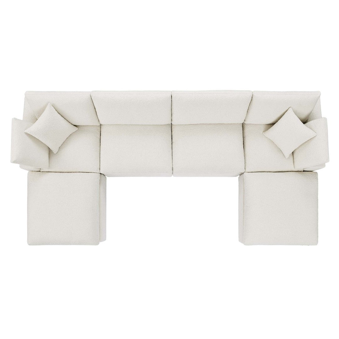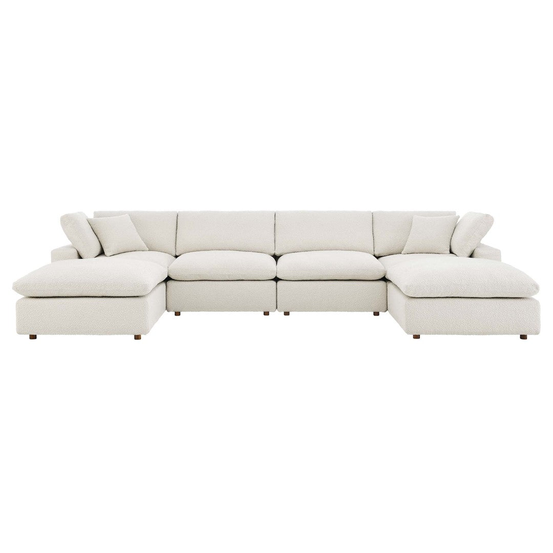 Sink into luxurious comfort with the Commix 6-Piece Down Filled Overstuffed Boucle Sectional—an inviting centerpiece that blends modern lines with sumptuous, overstuffed seating. Wrapped in soft boucle fabric with a tactile nubby texture, this sectional is built on a solid wood frame and filled with foam-padded, duck-down cushions for a lofty, sink-in feel that’s perfect for lounging, entertaining, or family movie nights.