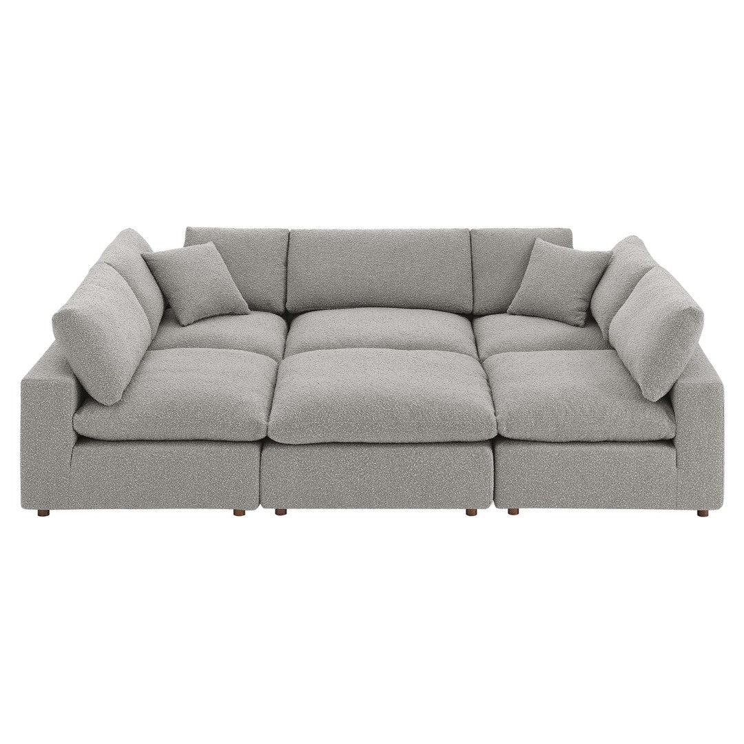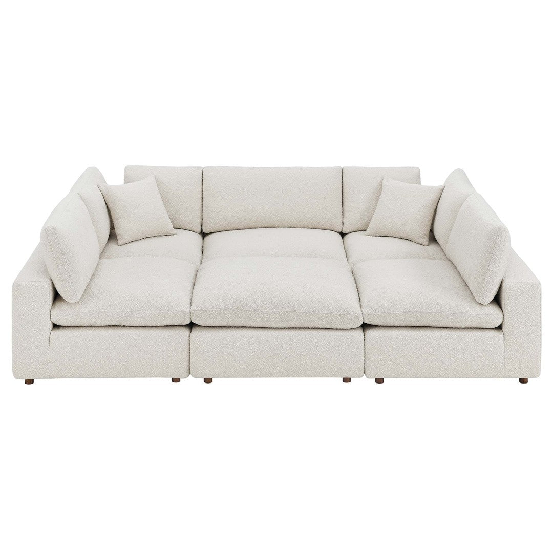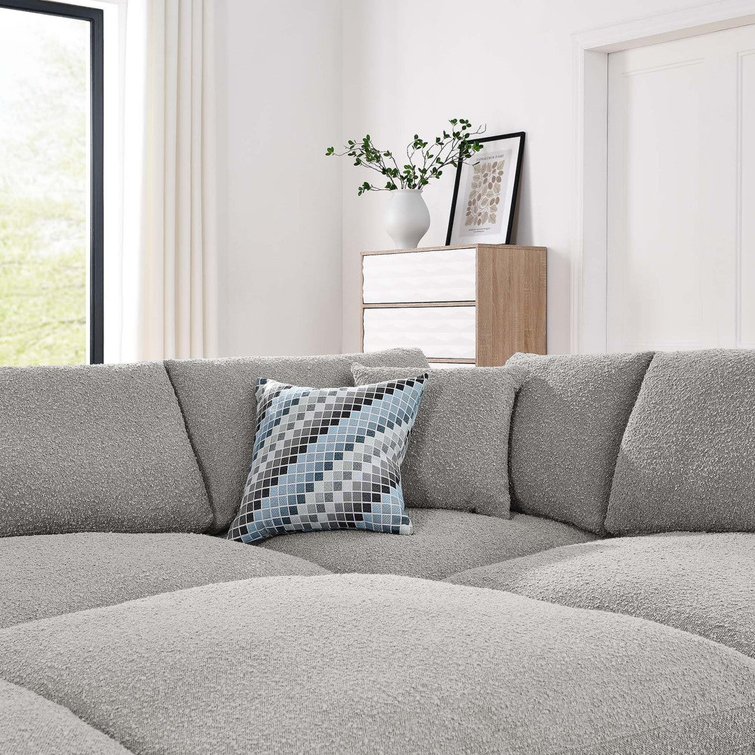 Sink into luxurious comfort with the Commix 6-piece overstuffed sectional, a modern centerpiece that combines plush duck-down cushions, durable construction, and a tactile boucle upholstery. Designed for sprawling relaxation or intimate lounging, this sectional delivers a welcoming, hotel-like feel while maintaining a clean-lined silhouette that complements contemporary living rooms, family rooms, or game rooms.