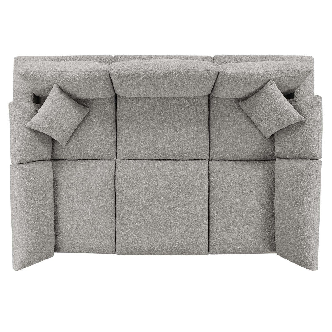 - Contemporary Modern Sectional Sofa Boucle Fabric Upholstery Density Foam Seat Down Feather and Cotton Cushions Solid Wood Construction Assembly Required Weight Capacity Each Piece: 331 lbs.