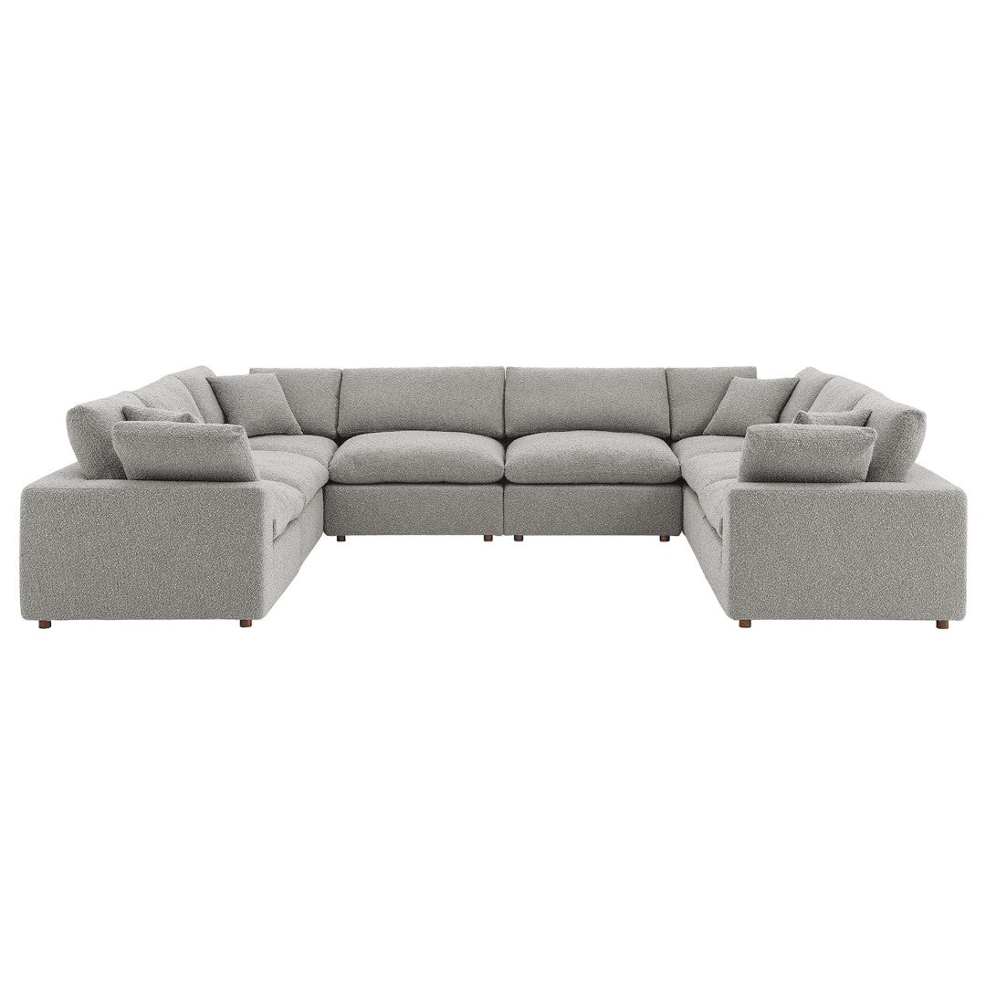 Sink into luxurious comfort with the Commix sectional—an overstuffed, down-filled centerpiece wrapped in soft boucle fabric that combines modern clean lines with a warm, inviting texture. Designed for sprawling out or cozying up, this 8-piece modular sectional delivers generous seating, resilient construction, and a sumptuous sink-in feel thanks to foam-wrapped duck down cushions. Ideal for living rooms, family rooms, or game rooms, Commix balances contemporary style with everyday livability.