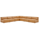 - 7-Piece Sectional Sofa Vegan Leather Upholstery Generous Foam Padded Cushions Elegant Trim Piping Sturdy Plastic Legs Weight Capacity Each Piece: 440 lbs.