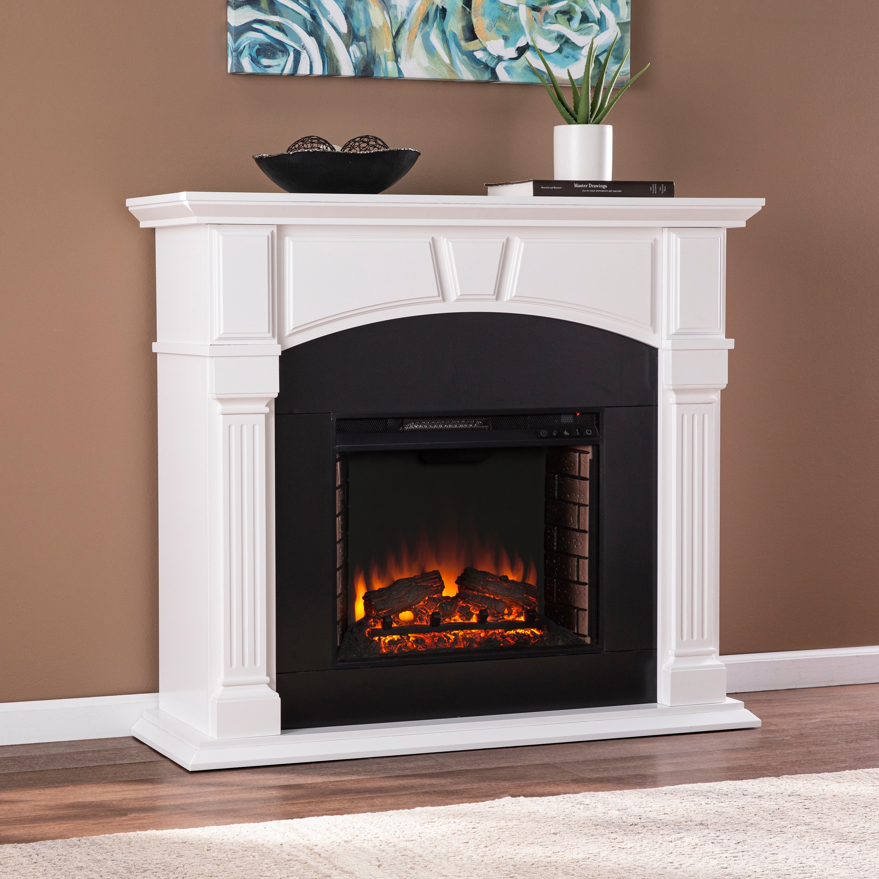 - Feature 1: Two-tone hued electric fireplace