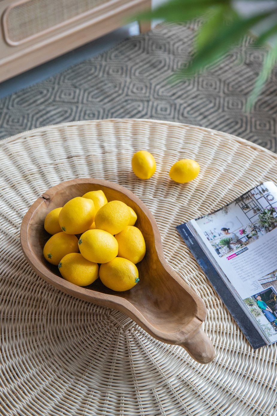 - Set of two teak bowls—one larger and one smaller that nests neatly inside the other