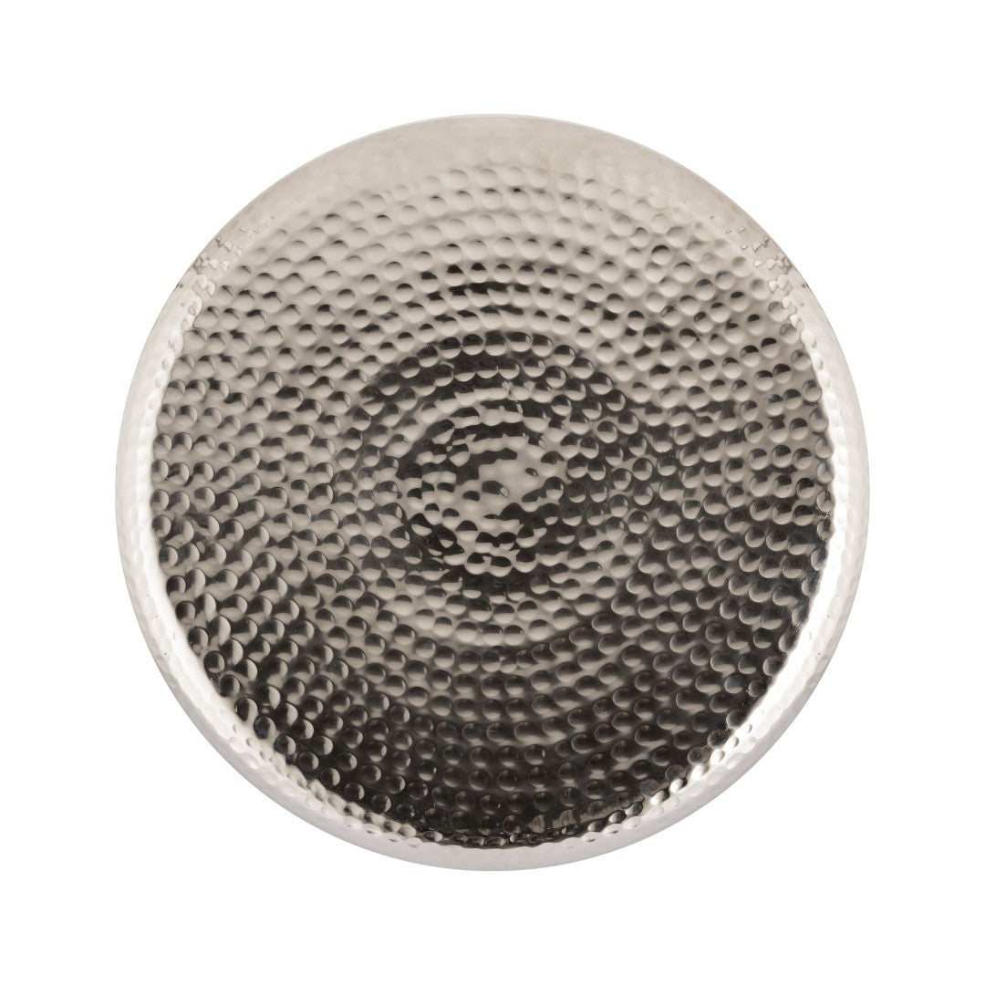 - Material & finish: Sturdy metal construction with a hammered polished nickel exterior and a smooth light blue enamel interior for a luxe, durable surface.