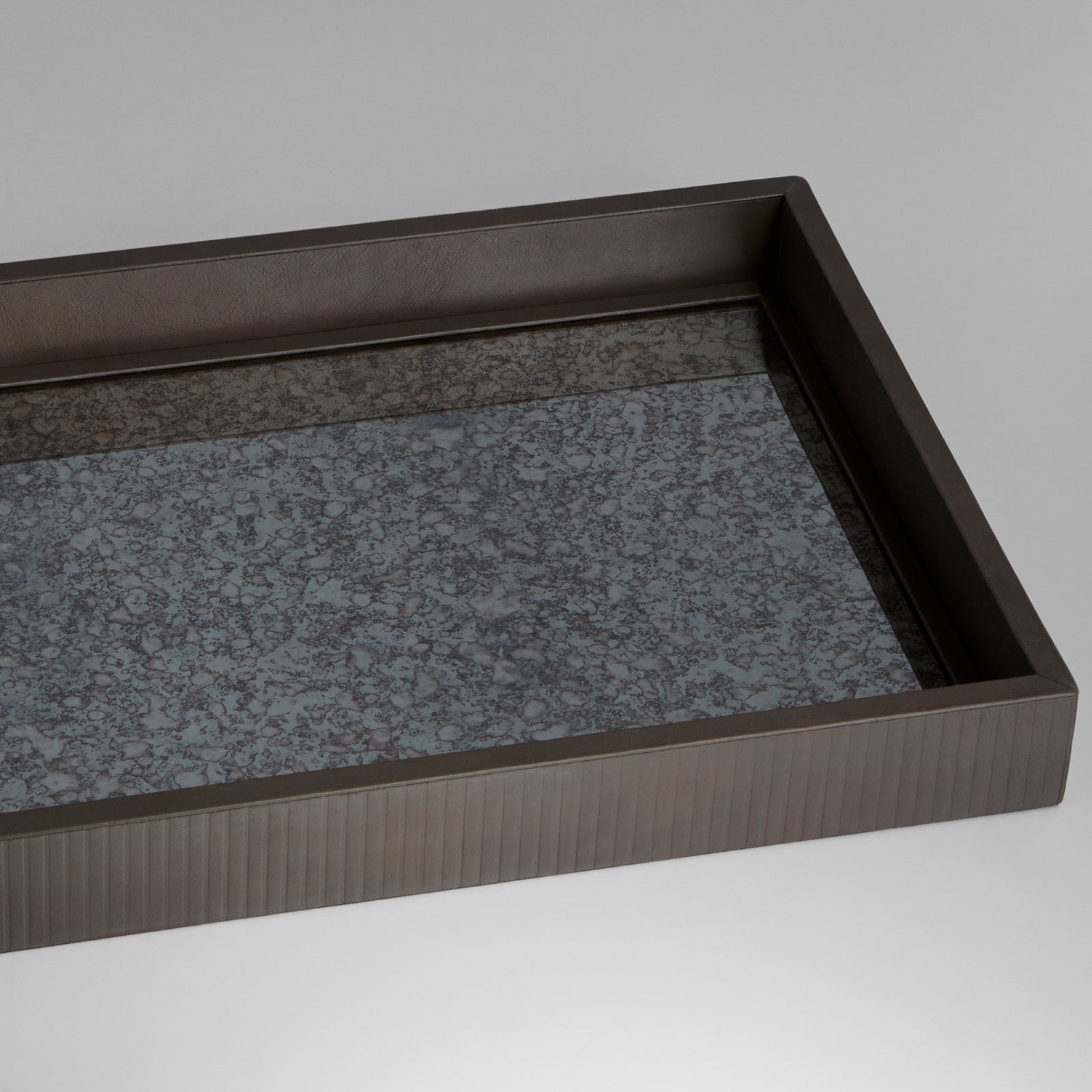 - Material: Leather|MDF|Antiqued Mirrored Glass