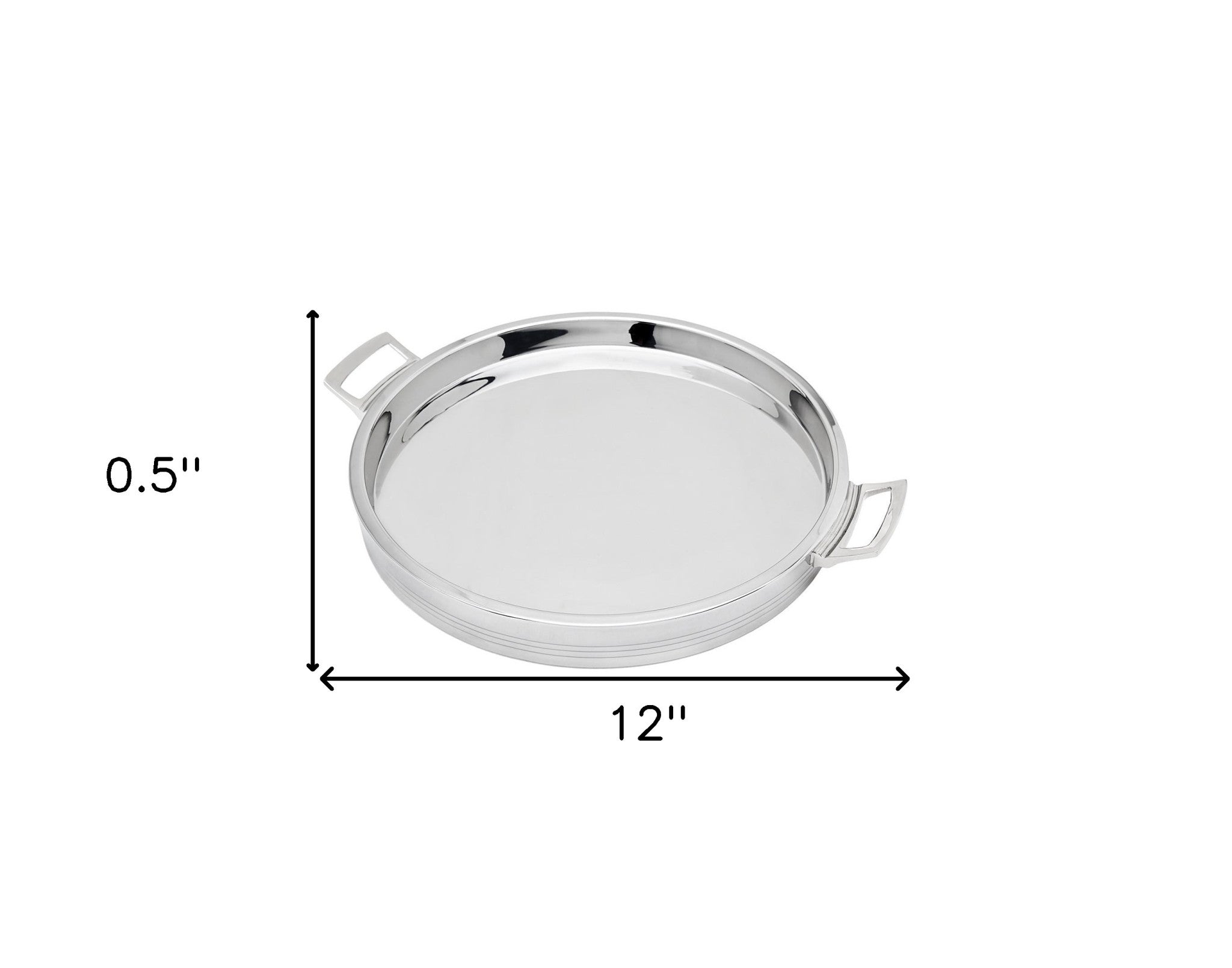 - Modern clean lines round stainless steel serving tray or bar tray.