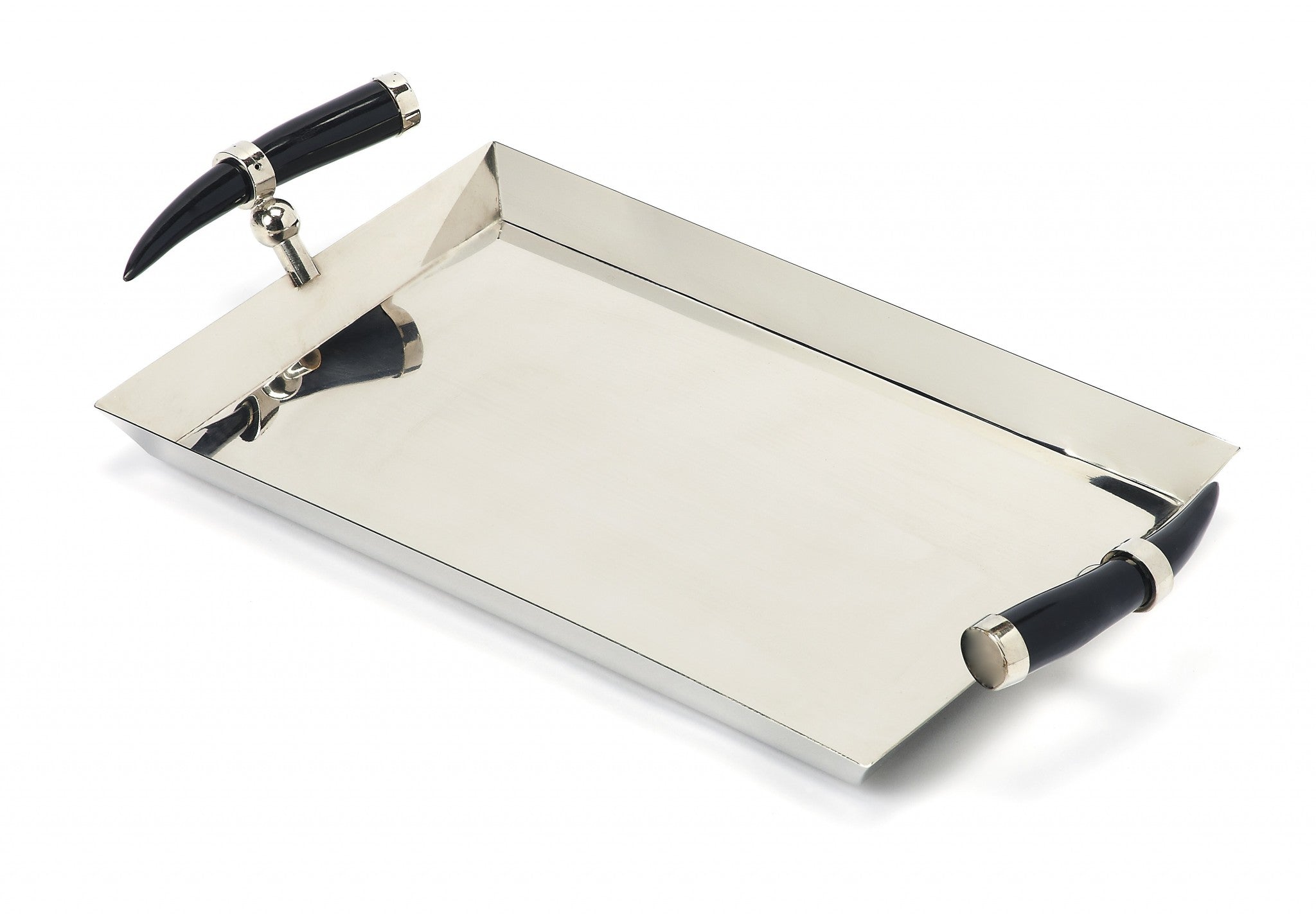 - Sleek and sophisticated stainless steel rectangular serving tray.
