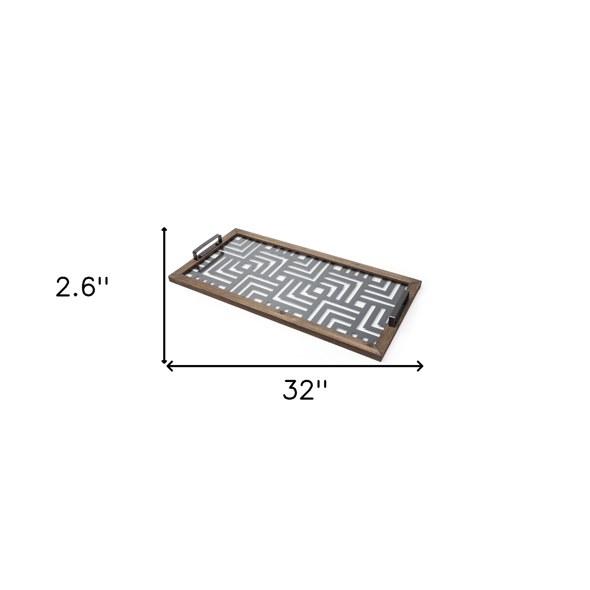 - a stylish serving tray made from metal, wood and glass.