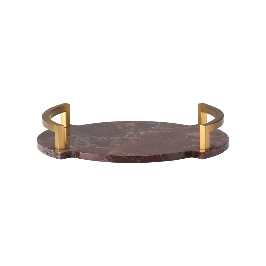 Elevate your serving and display with the Hopkins Tray — a refined blend of natural maroon marble and antique brass that brings understated luxury to any room. Its compact, sculpted form and polished accents make it equally suited for entertaining, organizing a vanity, or anchoring a coffee table vignette.
