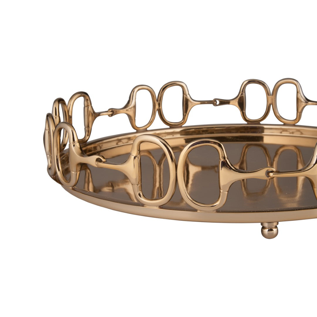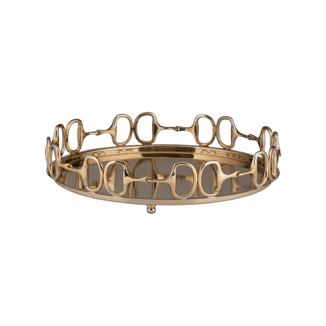Elevate your entertaining and home décor with a timeless equestrian-inspired brass serving tray. Crafted with attention to detail, this round tray features decorative "D" ring snaffle bits and an antique brass patina that brings warmth and character to any room. Durable yet stylish, it makes a thoughtful gift for horse lovers and a versatile accent for serving or display.