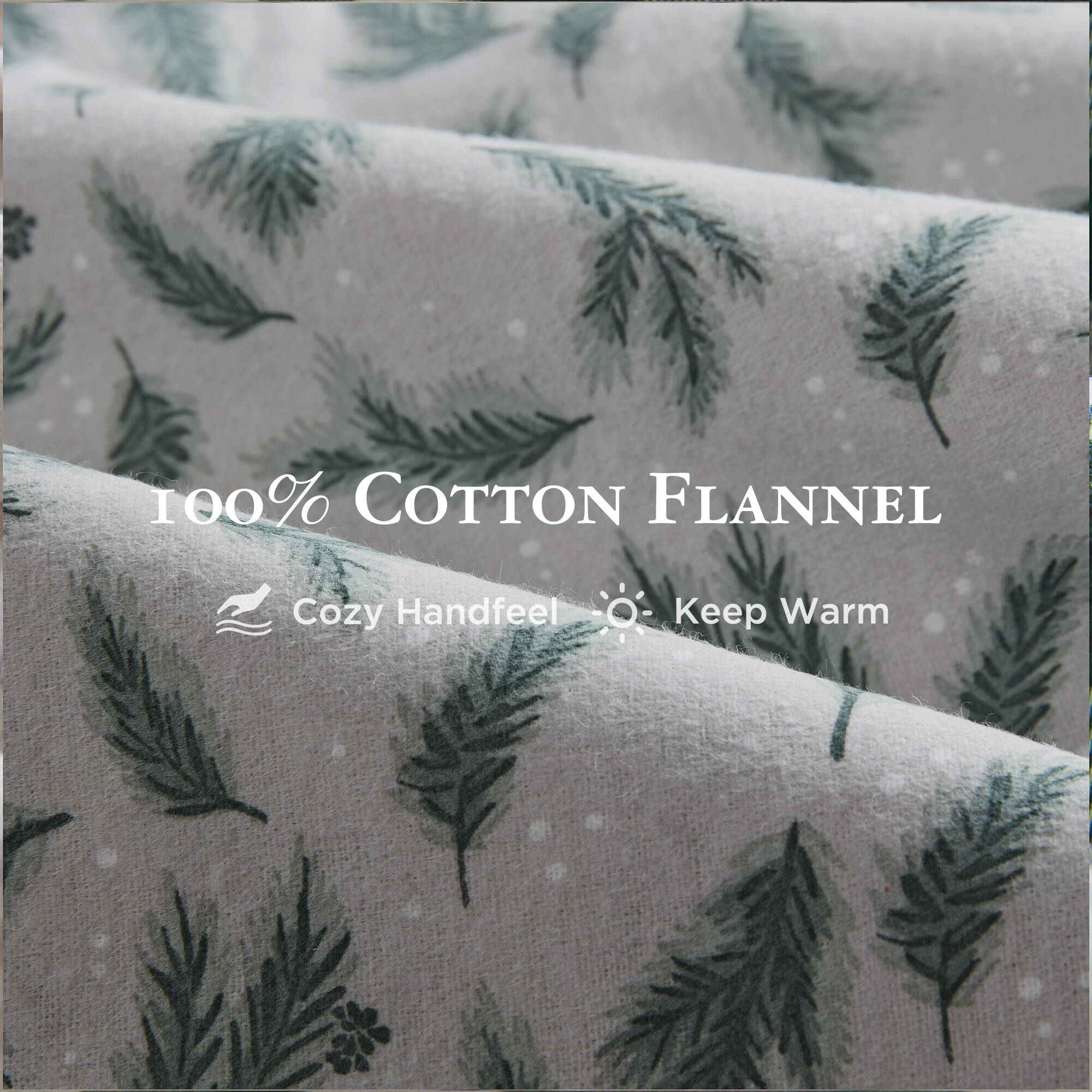Cozy up your twin bed with this 3-piece 100% cotton flannel sheet set, featuring a warm pine branches print that adds rustic charm and soft, breathable comfort for year-round use. Brushed on both sides for extra softness, these flannel sheets provide gentle warmth without overheating and are easy to care for.