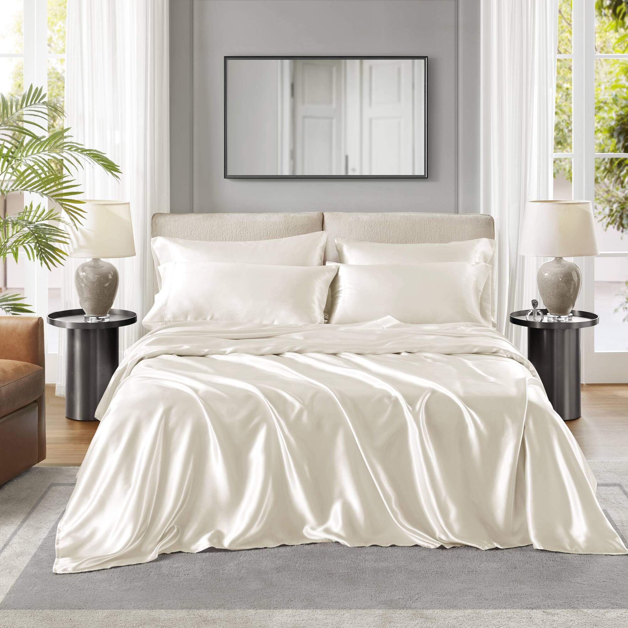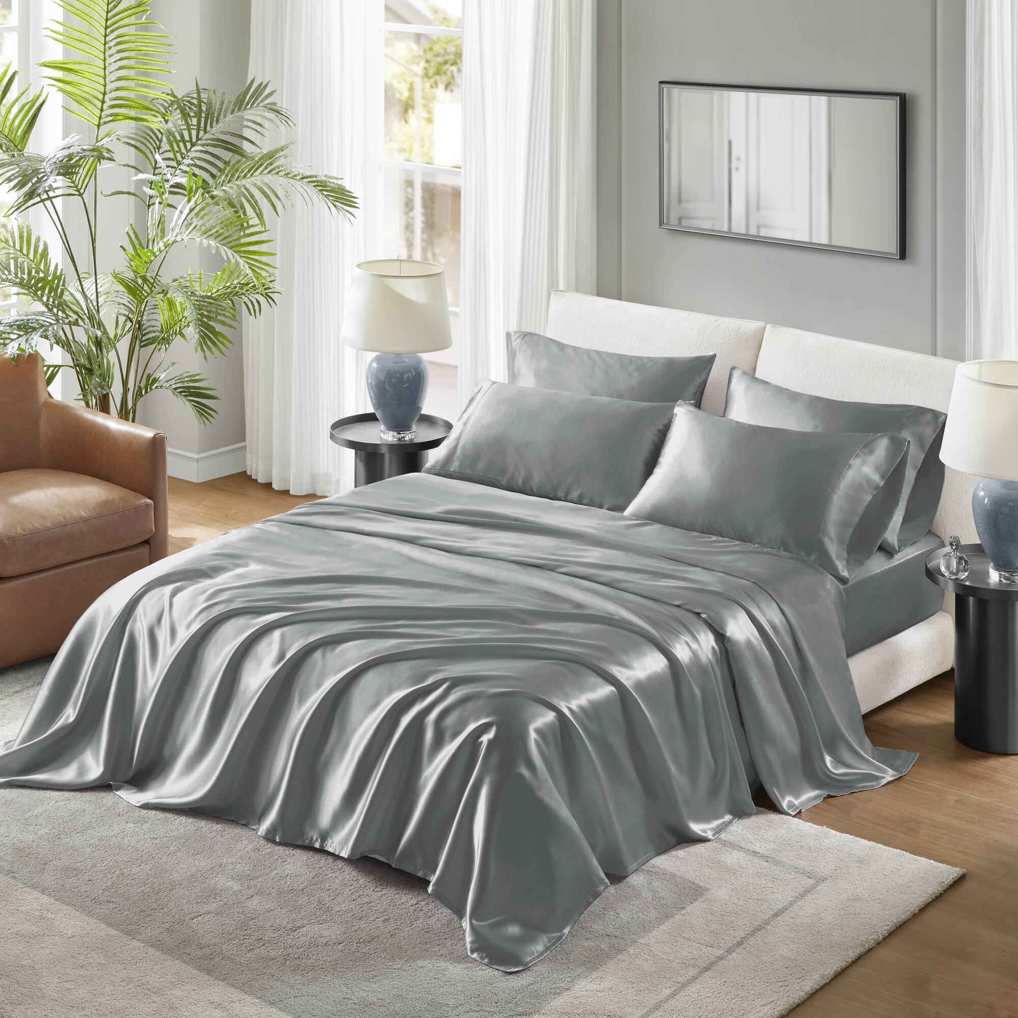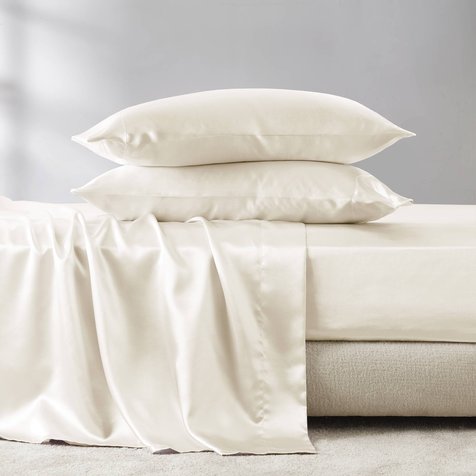 Transform your bedroom into a sleek, hotel-quality retreat with this 4-piece Twin luxury sheet set in elegant black. Crafted from smooth satin polyester for a lustrous finish and durable comfort, this complete set delivers a polished look and easy care—perfect for everyday use or special occasions.