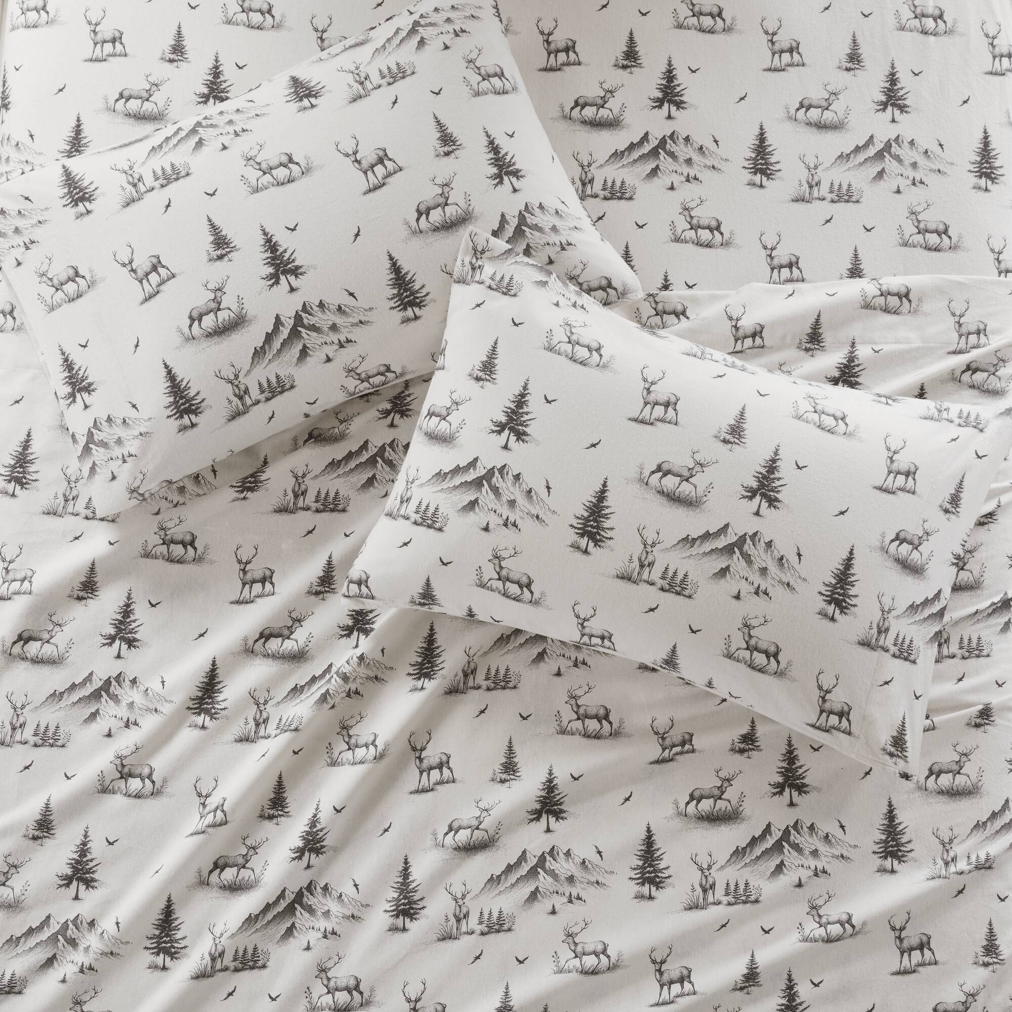 Wrap your bed in cozy, classic comfort with this 4-piece California King flannel sheet set featuring a subtle gray deer toile pattern—perfect for cool nights and rustic or traditional bedroom decor. Crafted from 100% cotton flannel, these sheets offer a soft, warm hand while the fitted sheet's deep pocket ensures a secure fit on thicker mattresses.